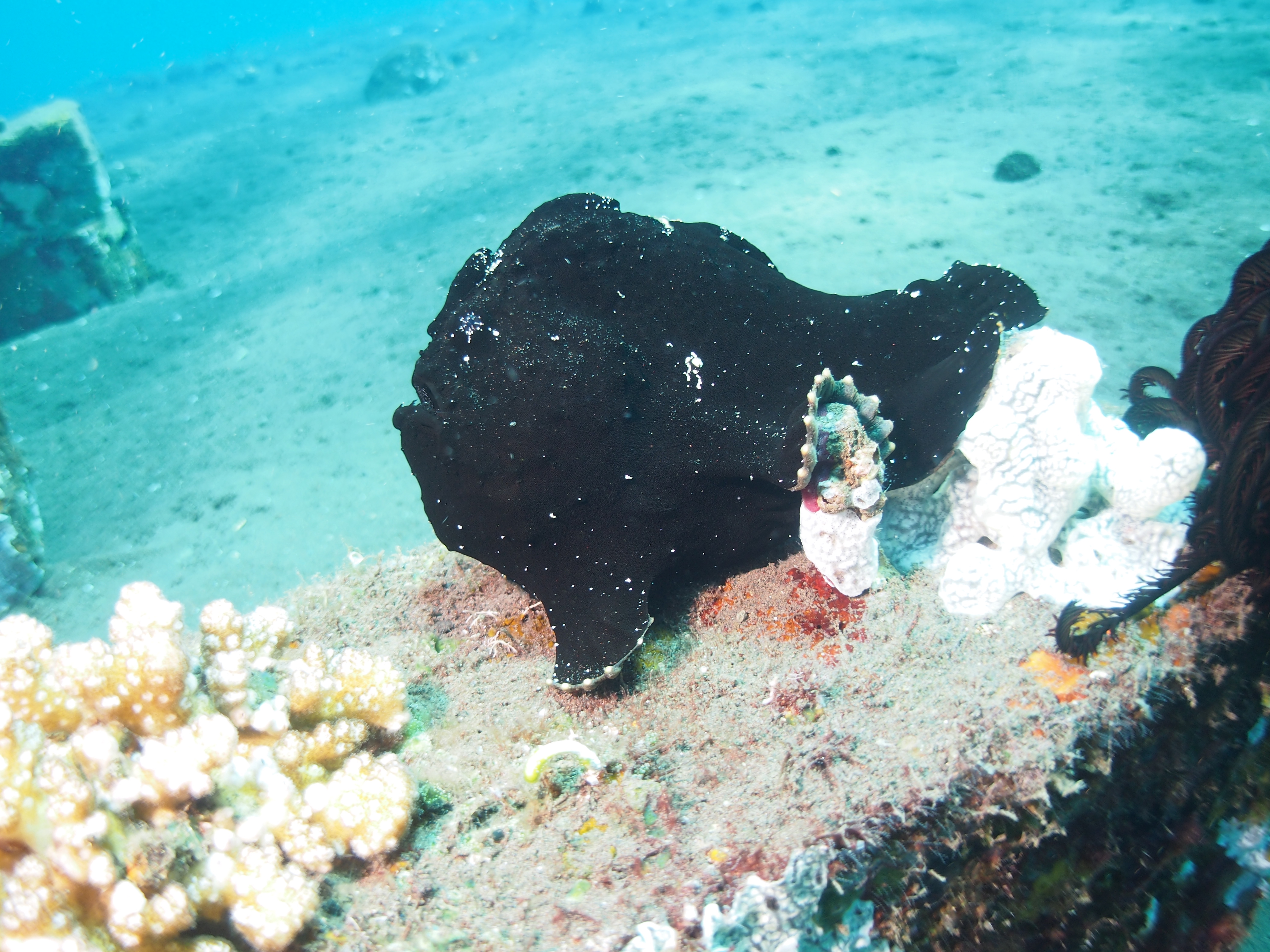 An unserem letzten Tauchtag in Tulamben hatten wir uns vorgenommen 3-mal zu tauchen. Auf allen 3 TG gab es viel Makro zu sehen. Besonders gefallen hat uns der 3. TG an einem älteren Hotel welches wohl hauptsächlich von Guids benutzt wird. Wir sahen dort einen großen schwarzen Schaukelfisch, 4 Geisterfetzenfische einen Fangschreckenkrebs und 2 Putzerstationen mit vielen Garnelen. Es war zwar nicht besonders tief aber da es schon unser 3. TG war und man dauernd was neues entdeckte mussten wir doch sehr aufpassen nicht in die Deko zu kommen. Wir waren alle sehr begeistert und uns einig das dies einer der schönsten Tauchgänge war.