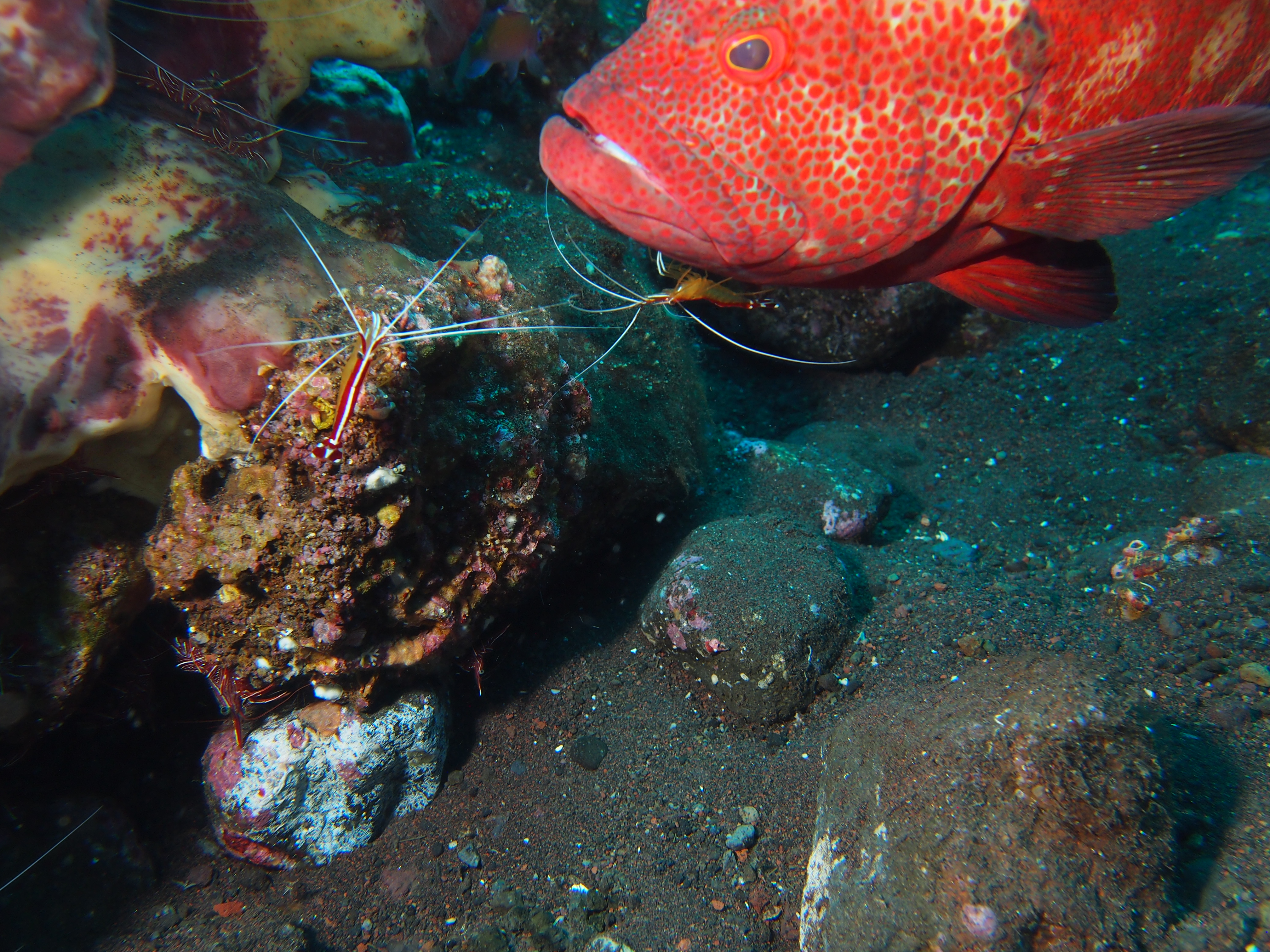 An unserem letzten Tauchtag in Tulamben hatten wir uns vorgenommen 3-mal zu tauchen. Auf allen 3 TG gab es viel Makro zu sehen. Besonders gefallen hat uns der 3. TG an einem älteren Hotel welches wohl hauptsächlich von Guids benutzt wird. Wir sahen dort einen großen schwarzen Schaukelfisch, 4 Geisterfetzenfische einen Fangschreckenkrebs und 2 Putzerstationen mit vielen Garnelen. Es war zwar nicht besonders tief aber da es schon unser 3. TG war und man dauernd was neues entdeckte mussten wir doch sehr aufpassen nicht in die Deko zu kommen. Wir waren alle sehr begeistert und uns einig das dies einer der schönsten Tauchgänge war.