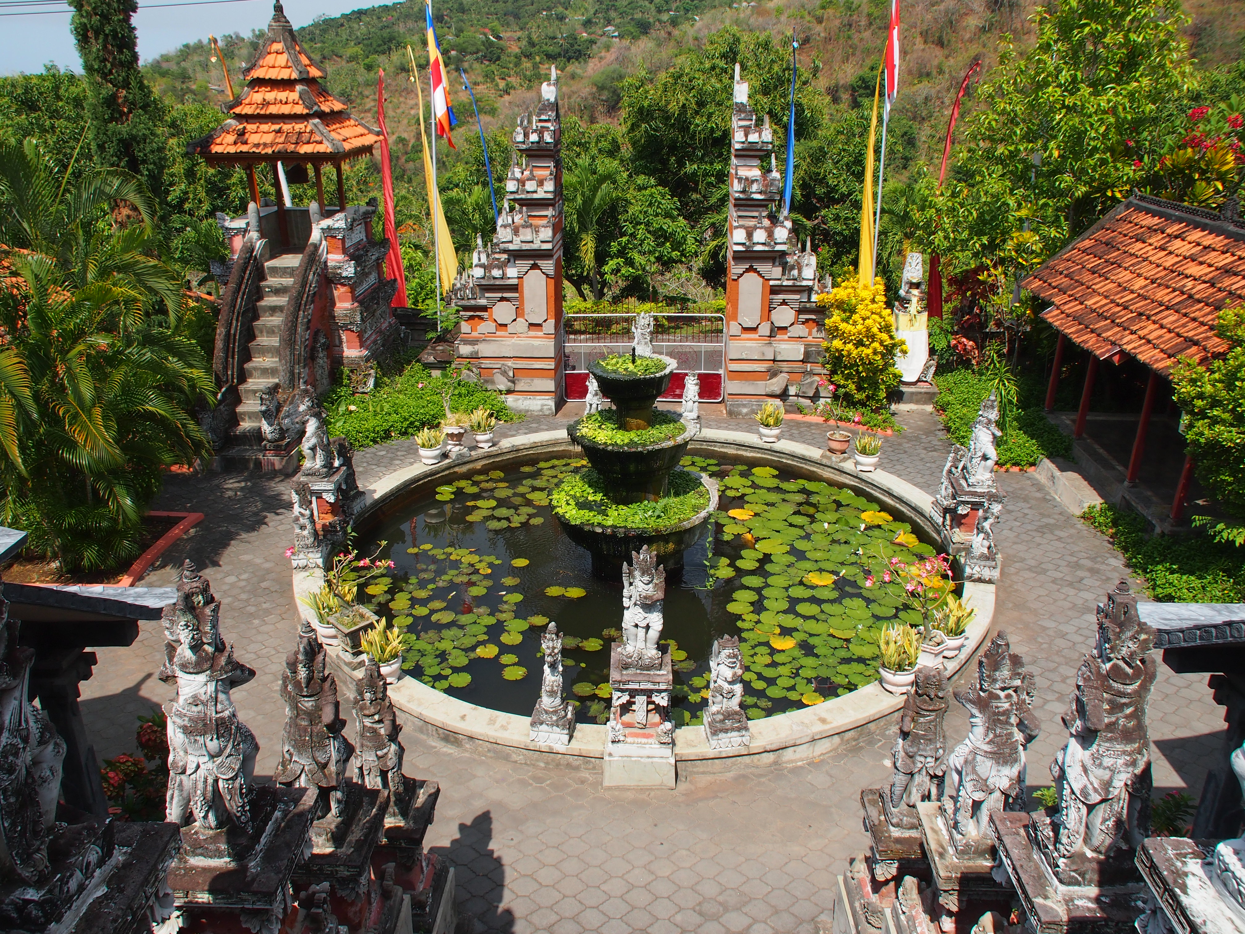 Um 9:00 Uhr wurden wir zur Weiterfahrt nach Pemuteran abgeholt. Zuerst ging es mit dem deutschsprachigen Reiseleiter zum Beji Tempel nach Sangsit Unterwegs bekamen wir Cashew Bäume gezeigt und konnten sehen welcher Teil für die Cashewkerne benutzt wird. Nach dem Mittagessen ging es dann weiter zu einem Buddhistischen Kloster in Banjar welches wir dann besichtigt haben. Unser letzter Ausflugspunkt waren die heißen Quellen von Banjar. Sie sahen sehr einladen aus. Da es aber bedingt durch den Feiertag gestern sehr voll war und wir auch nicht so viel Zeit hatten haben wir sie uns nur angesehen. Übernachtet haben wir dann im Adi Assri Hotel. Dies war mit direktem Meereszugang und einer Top Ausstattung unser bestes Hotel.