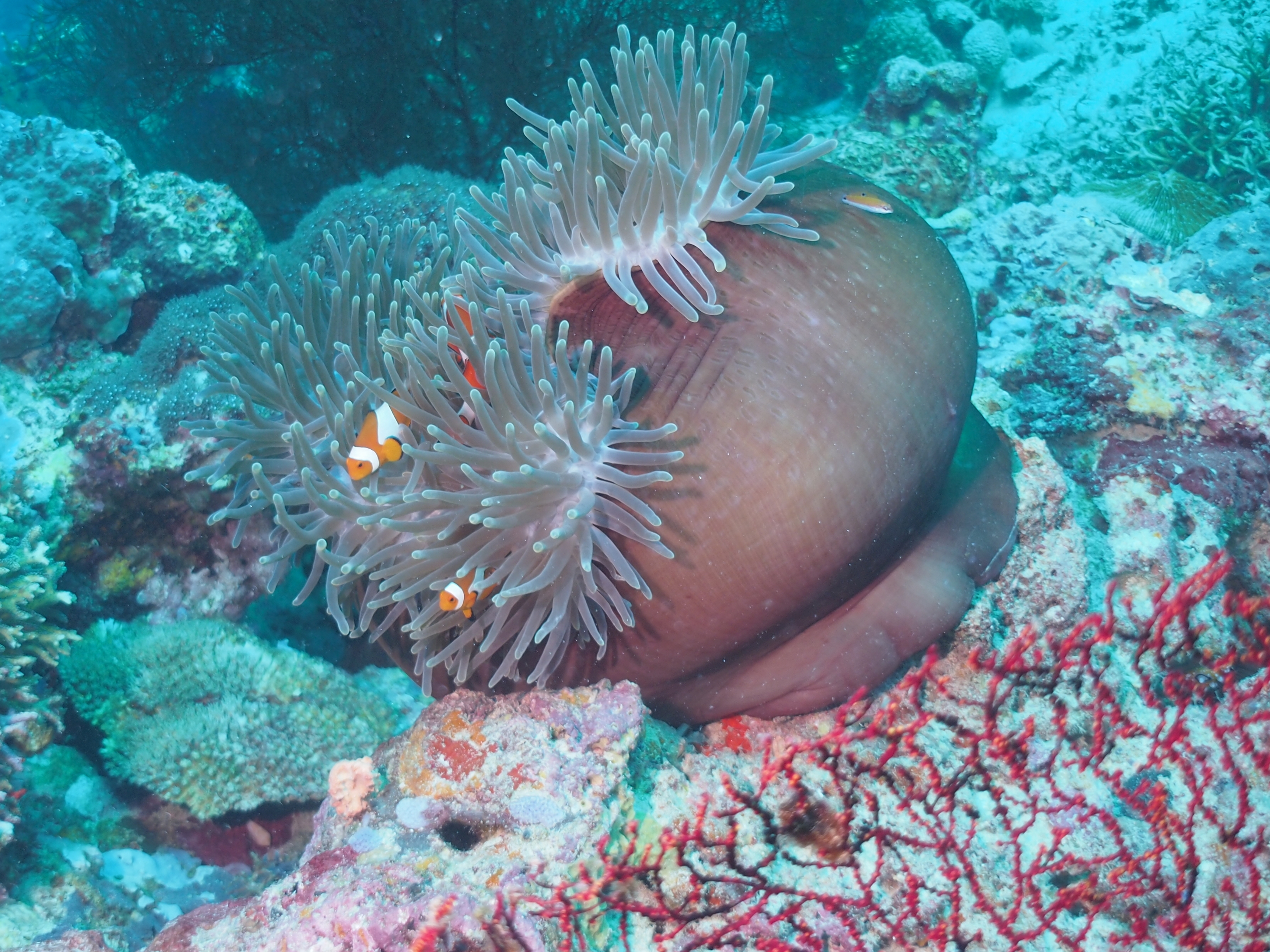 Heute Morgen konnten wir länger schlafen da wir erst um 10:00 Uhr abgeholt wurden. Zuerst ging es 20 Minuten mit dem Auto zum Hafen und von da aus nochmal 45 Minuten mit dem Boot zur Insel Menjangan. Dort hatten wir dann 2 entspannte Tauchgänge mit den üblichen Fischen in einem Korallenriff.