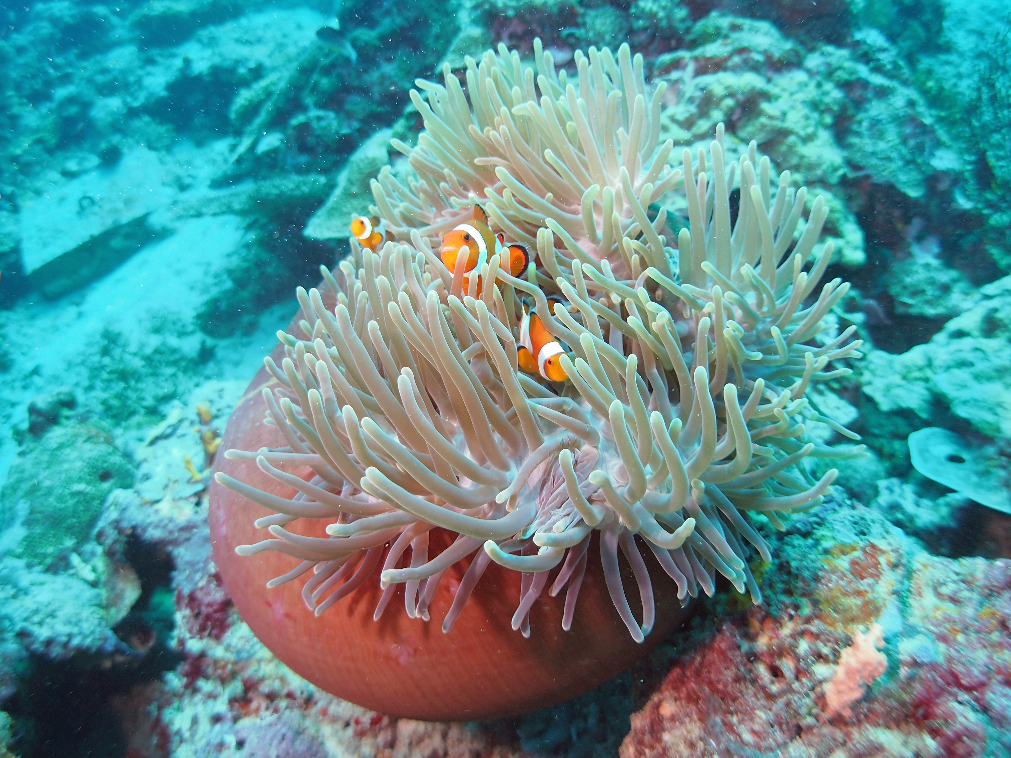 Heute Morgen konnten wir länger schlafen da wir erst um 10:00 Uhr abgeholt wurden. Zuerst ging es 20 Minuten mit dem Auto zum Hafen und von da aus nochmal 45 Minuten mit dem Boot zur Insel Menjangan. Dort hatten wir dann 2 entspannte Tauchgänge mit den üblichen Fischen in einem Korallenriff.