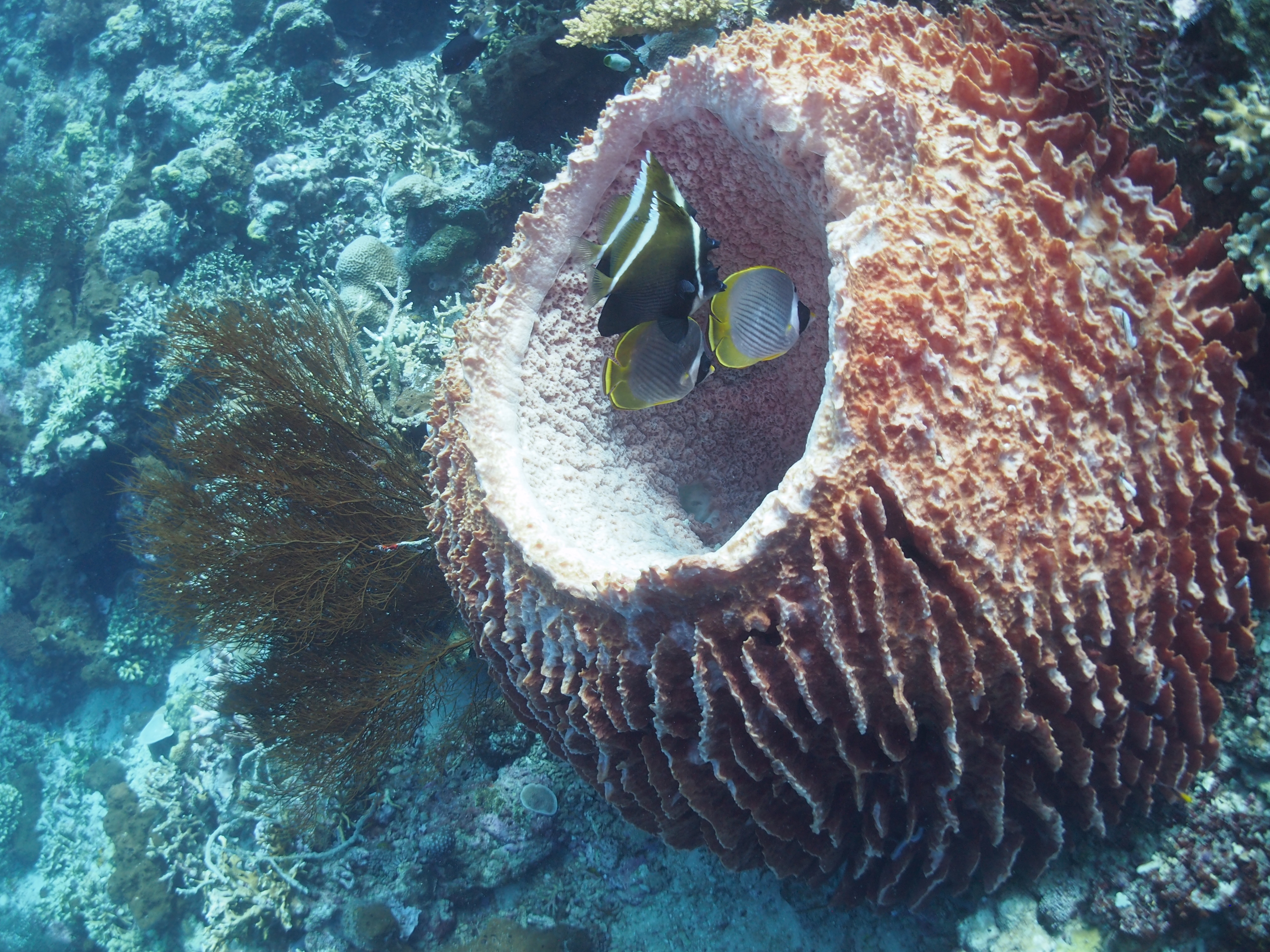 Heute Morgen konnten wir länger schlafen da wir erst um 10:00 Uhr abgeholt wurden. Zuerst ging es 20 Minuten mit dem Auto zum Hafen und von da aus nochmal 45 Minuten mit dem Boot zur Insel Menjangan. Dort hatten wir dann 2 entspannte Tauchgänge mit den üblichen Fischen in einem Korallenriff.