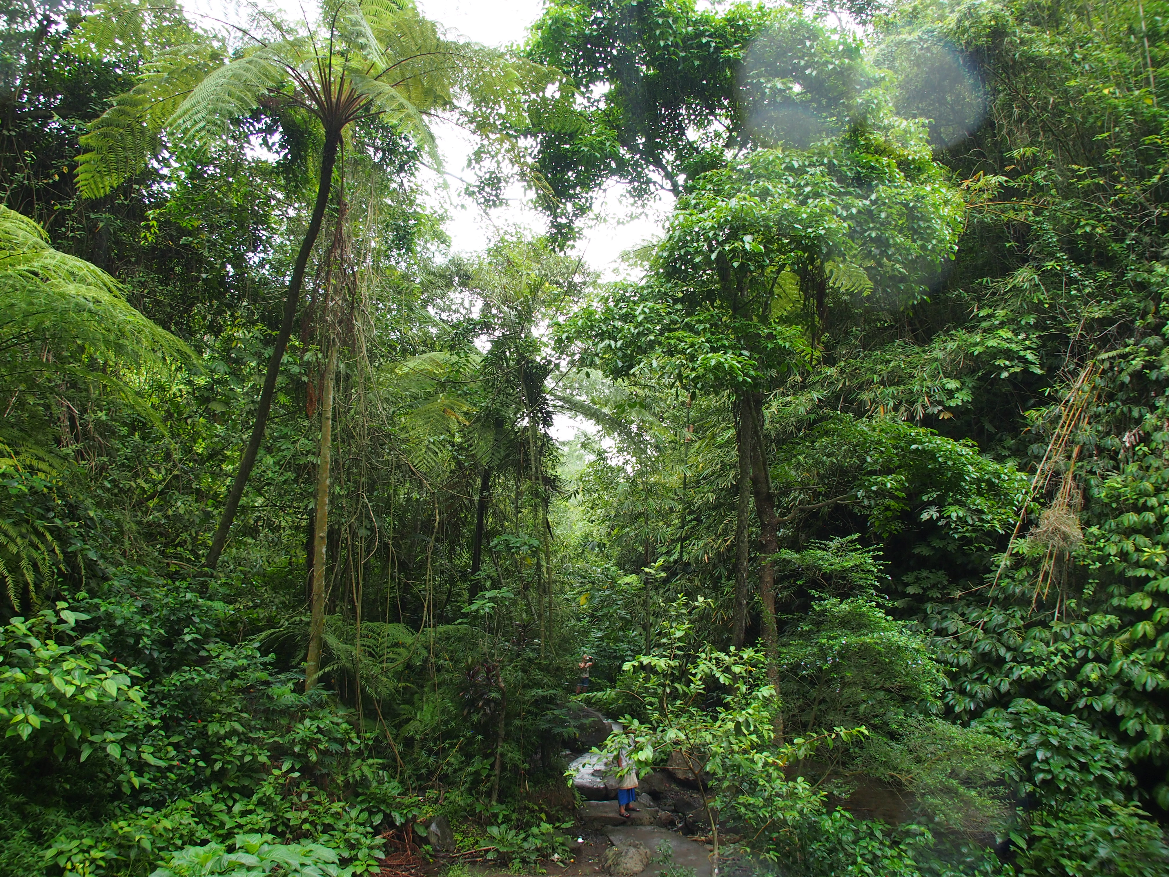Um 10:00 Uhr ging es heute Morgen los nach Ubud. Auf unserer Fahrt machten wir als erstes halt am Munduk Wasserfall. Auf dem Fußweg vom Parkplatz zum Wasserfall ging es durch einen kleinen tropischen Regenwald mit Farnen, Avocados, Nelkenbäume und Jack Früchten.