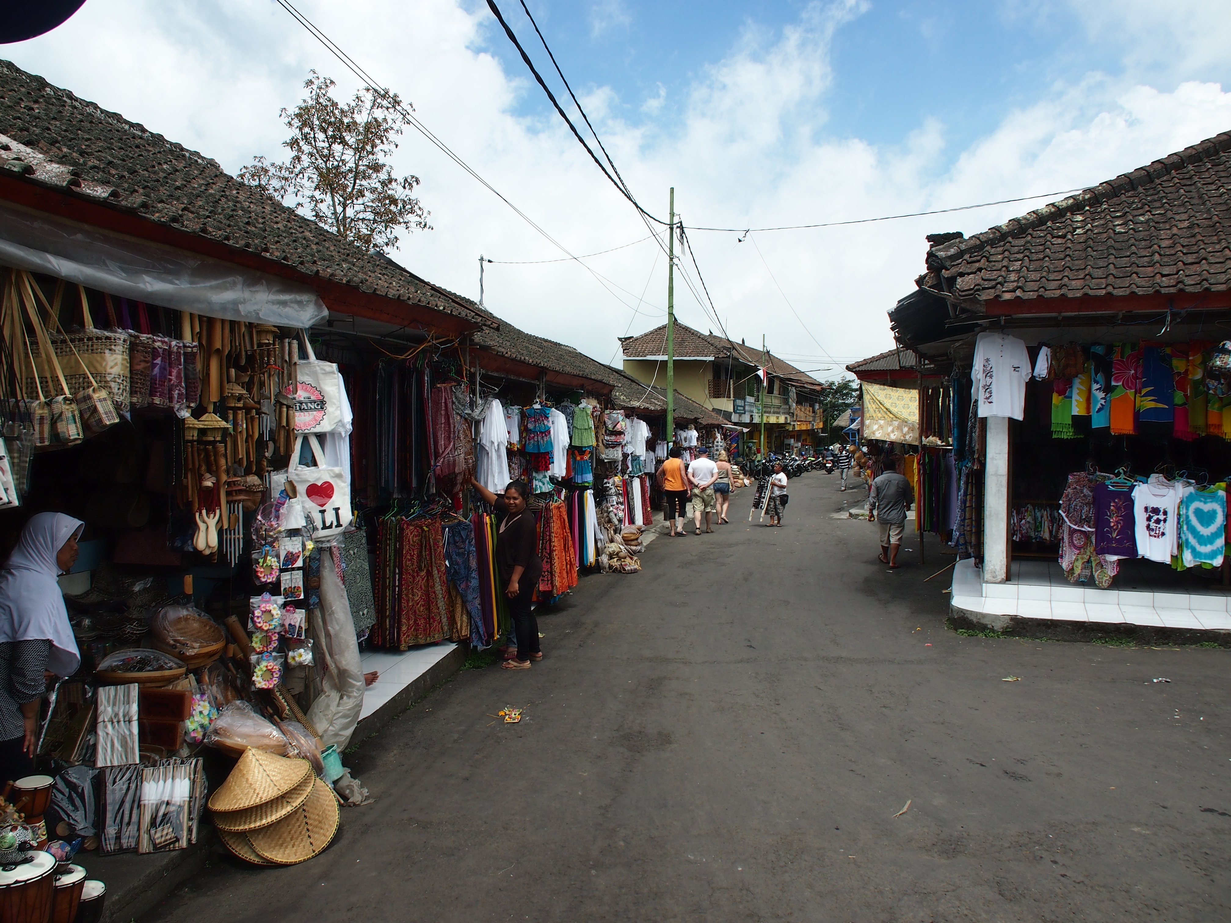 Weiter ging die Fahrt dann in die Berge. Unterwegs gab es von einem Aussichtspunkt einen tollen Blick auf die beiden Zwillingsseen. Der nächste Punkt auf unserem Programm war dann der Danu Beratan Tempel. Ein Hinduistischen Tempel der aber zumindest im Außenbereich mehr nach Ausflugsziel für Familien aussieht. Gleich daneben war der tropische Markt auf dem viele Gewürze und tropischen Früchte angeboten wurden. Wir haben aber nur um ein paar gewürzte Erdnüsse und aus Süßkartoffeln gebacken Chips mit Palmzucker gefeilscht. Nach dem Mittagessen war unser letzter Programmpunkt der Taman Ayun Tempel welcher mit einem Wassergarten umgeben ist. Übernachtet haben wir im Adhi Cottage in Ubud. Vorher sind wir noch ein bisschen durch Ubud geschlendert und haben uns ein kleines Restaurant zum Abendessen gesucht.
