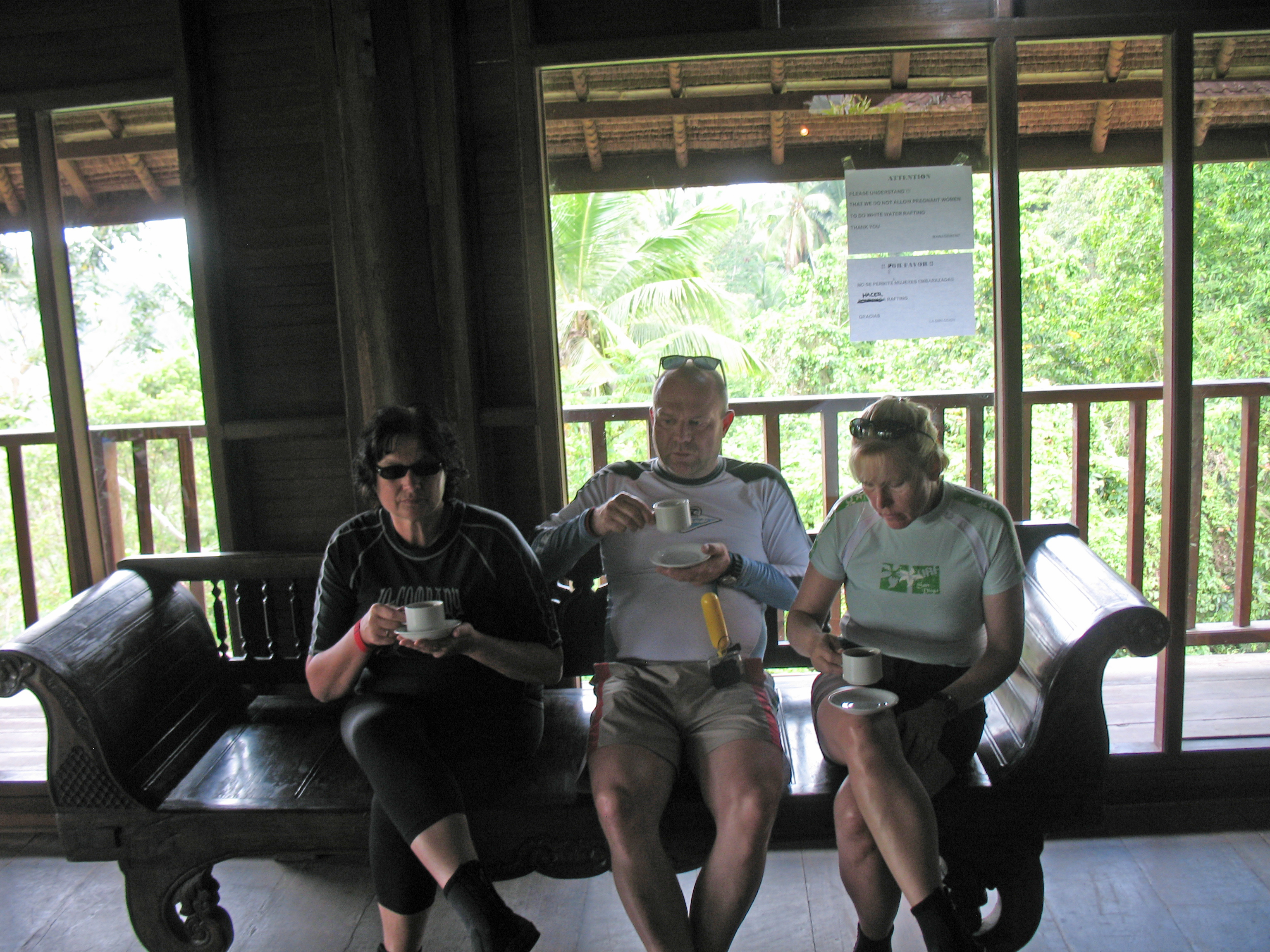 Um 8:30 Uhr wurden wir heute Morgen nach dem Frühstück in dem benachbarten Kaffee des Adhi Cottage abgeholt. Nach 45 Minuten Autofahrt kamen wir am Startpunkt unserer Rafting Tour an und wurden gleich mit Schwimmweste und Helm ausgestattet. Nach kurzer Einweisung ging es dann mit unserem Bootsführer zu fünft auf die zweistündige Tour. Es hat allen viel Spaß gemacht und das Bad im Fluss war sehr erfrischend. Am Endpunkt konnte man sich auch gleich duschen und es gab ein warmes Mittagessen. Abends waren wir dann wieder im Sagitarius Restaurant nur etwas links die Straße runter. Hier ist das Essen sehr lecker und der Koch versteht sein Handwerk was sich auch in den mit frisch gepressten Obst zubereiteten Cocktails bemerkbar macht.