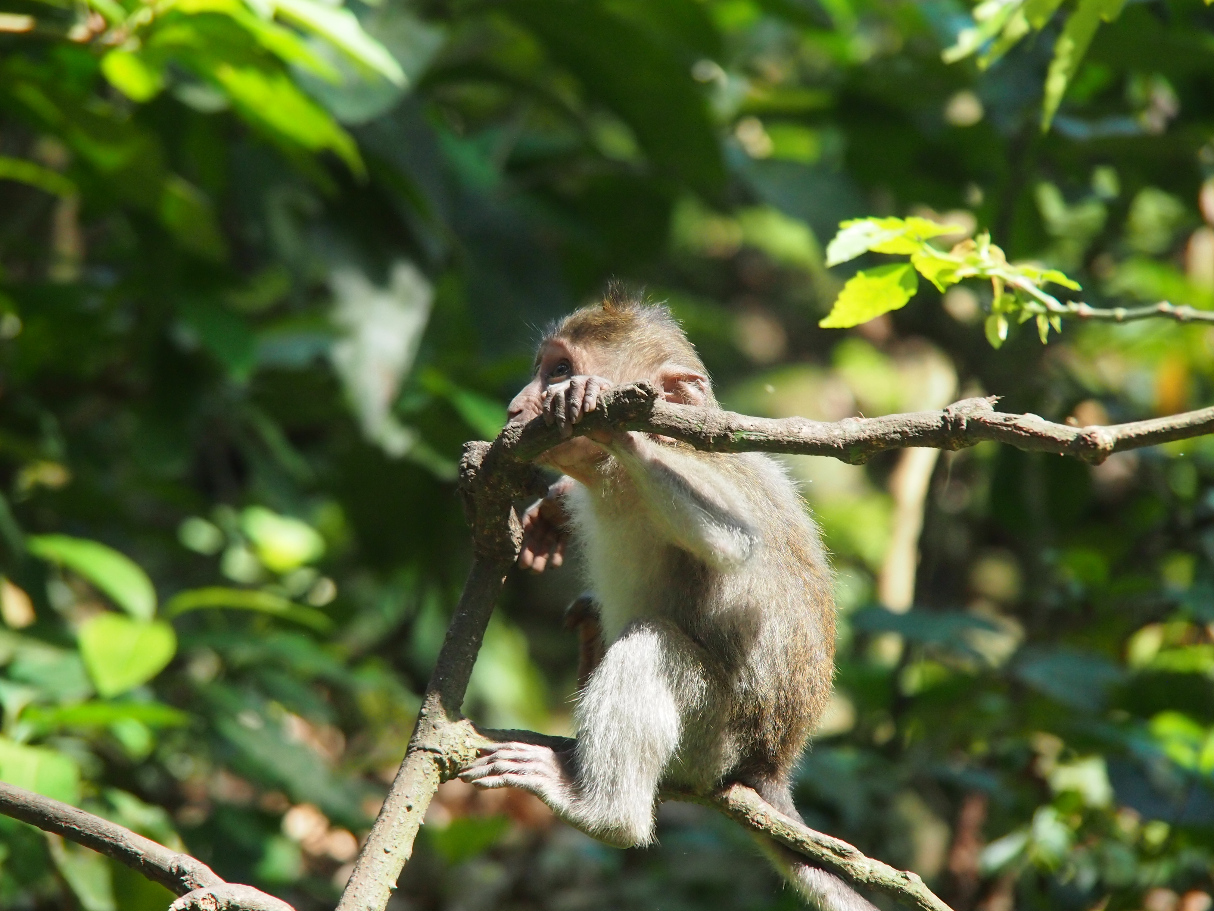 Um 09:00 Uhr ging heute Morgen unsere Rundreise mit der Fahrt zurück nach Sanur weiter. Als erstes sind wir in den Affenwald gefahren. Dort kann man wunderschön beobachten wie die Makaken durch die Bäume und über die Statuen klettern. Auch ein riesiger Ficus Benjamin mit Luftwurzeln über 30 m im Durchmesser verteilt haben wir dort bestaunt. Danach ging es weiter zu einer wunderschön im Hang gelegen Reis-Terrasse. Sehr interessant war auch ein Besuch in einem kleinen Gewürz und Kaffeehandel. Wir sahen die verschiedenen Bäume und Früchte welche hier wachsen. Auch konnten wir die verschiedenen Stufen der Kaffeeherstellung beobachten. Einschließlich der Mungos welche die Kaffeebohnen fressen und dann wieder ausscheiden was dann den berühmten Luwak Kaffee ergibt. All diese verschiedenen Sorten konnten wir hier probieren. Nach dem Mittagessen sind wir dann noch in eine Holzschnitzerei gefahren wo Peter sich einen Barong und Claudia sich einen Elefanten erhandelt haben. Auf speziellen Wunsch von Peter ging es dann noch zum Harley Händler bevor wir unser ausgewaschenes und getrocknetes Tauchgepäck in der Ena Tauchbasis in Empfang nehmen konnten. Dort haben wir dann den einen zusätzlichen Tauchtag bezahlt und bekamen eine landestypische Schnitzerei mit unserem Namen geschenkt. Angekommen im Puri Mesari Hotel haben wir die letzte Gelegenheit genutzt uns nochmal eine Massage zu gönnen und haben dann auch im Hotel lecker zu Abend gegessen.