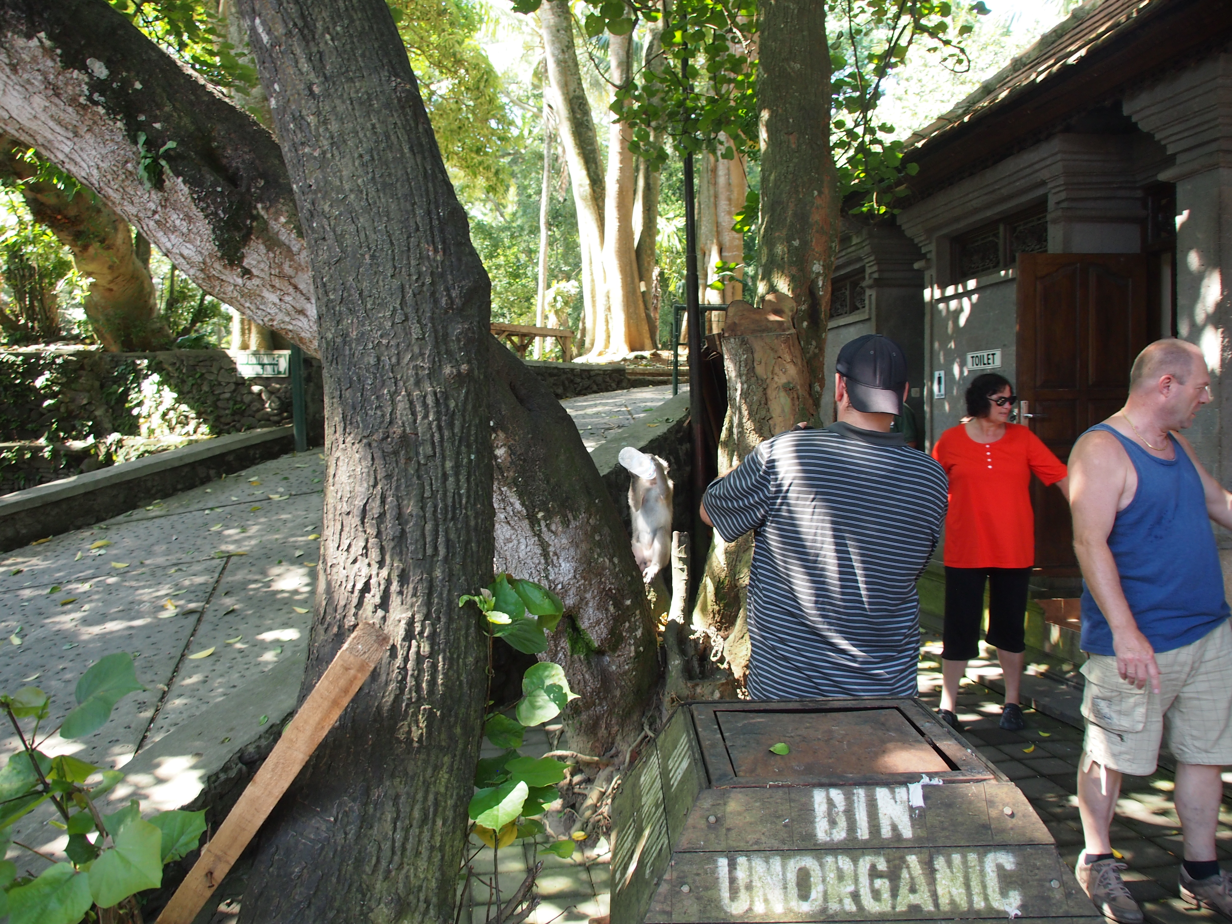 Um 09:00 Uhr ging heute Morgen unsere Rundreise mit der Fahrt zurück nach Sanur weiter. Als erstes sind wir in den Affenwald gefahren. Dort kann man wunderschön beobachten wie die Makaken durch die Bäume und über die Statuen klettern. Auch ein riesiger Ficus Benjamin mit Luftwurzeln über 30 m im Durchmesser verteilt haben wir dort bestaunt. Danach ging es weiter zu einer wunderschön im Hang gelegen Reis-Terrasse. Sehr interessant war auch ein Besuch in einem kleinen Gewürz und Kaffeehandel. Wir sahen die verschiedenen Bäume und Früchte welche hier wachsen. Auch konnten wir die verschiedenen Stufen der Kaffeeherstellung beobachten. Einschließlich der Mungos welche die Kaffeebohnen fressen und dann wieder ausscheiden was dann den berühmten Luwak Kaffee ergibt. All diese verschiedenen Sorten konnten wir hier probieren. Nach dem Mittagessen sind wir dann noch in eine Holzschnitzerei gefahren wo Peter sich einen Barong und Claudia sich einen Elefanten erhandelt haben. Auf speziellen Wunsch von Peter ging es dann noch zum Harley Händler bevor wir unser ausgewaschenes und getrocknetes Tauchgepäck in der Ena Tauchbasis in Empfang nehmen konnten. Dort haben wir dann den einen zusätzlichen Tauchtag bezahlt und bekamen eine landestypische Schnitzerei mit unserem Namen geschenkt. Angekommen im Puri Mesari Hotel haben wir die letzte Gelegenheit genutzt uns nochmal eine Massage zu gönnen und haben dann auch im Hotel lecker zu Abend gegessen.
