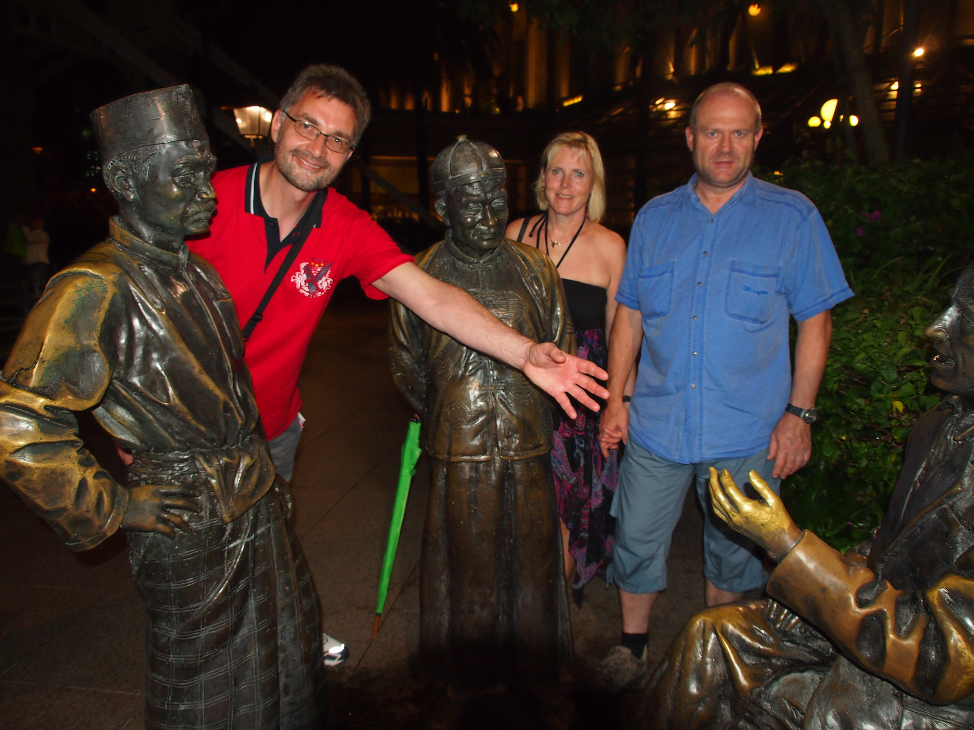 Nach dem Frühstück haben wir uns heute Morgen mit der MRT auf den Weg nach Little India gemacht. Wir haben uns die Tempel: "Veerama Kaliamman" und "Srinivase Perumal" angesehen welche für uns Europäer doch sehr "bunt" aber auch sehr schön sind. Im "Tempel of 1000 Lights" beeindruckt hingegen die große Buddha-Statue. Aber auch der Distrikt selbst und das "Mustafa Center" wo es auf 5 Ebenen fast alles gibt haben mir sehr gut gefallen. Dann fuhr ich weiter nach "Chinatown". Am eindrucksvollsten ist es einfach durch die Pagoda-, Temple- und Smith Street zu schlendern und in die Geschäfte zu schauen was dort angebotenen wird. Die vielen exotischen Zutaten zum Essen oder "Heilen", die andersartigen Gebrauchsgegenstände aber auch die kleinen bunten Häuschen selbst fand ich sehr eindrucksvoll. Bei der Rückfahrt habe ich mir dann noch den "Clark Quay" angesehen. Hier gibt es eine große Zahl an Restaurants welche in hübsch anzusehenden Häusern in der überdachten Straße nebeneinander stehen. Zum Abendessen sind wir dann in Richtung "Boat Quay" gelaufen wo wir in einem gemütliches Restaurant am Wasser gegessen haben.