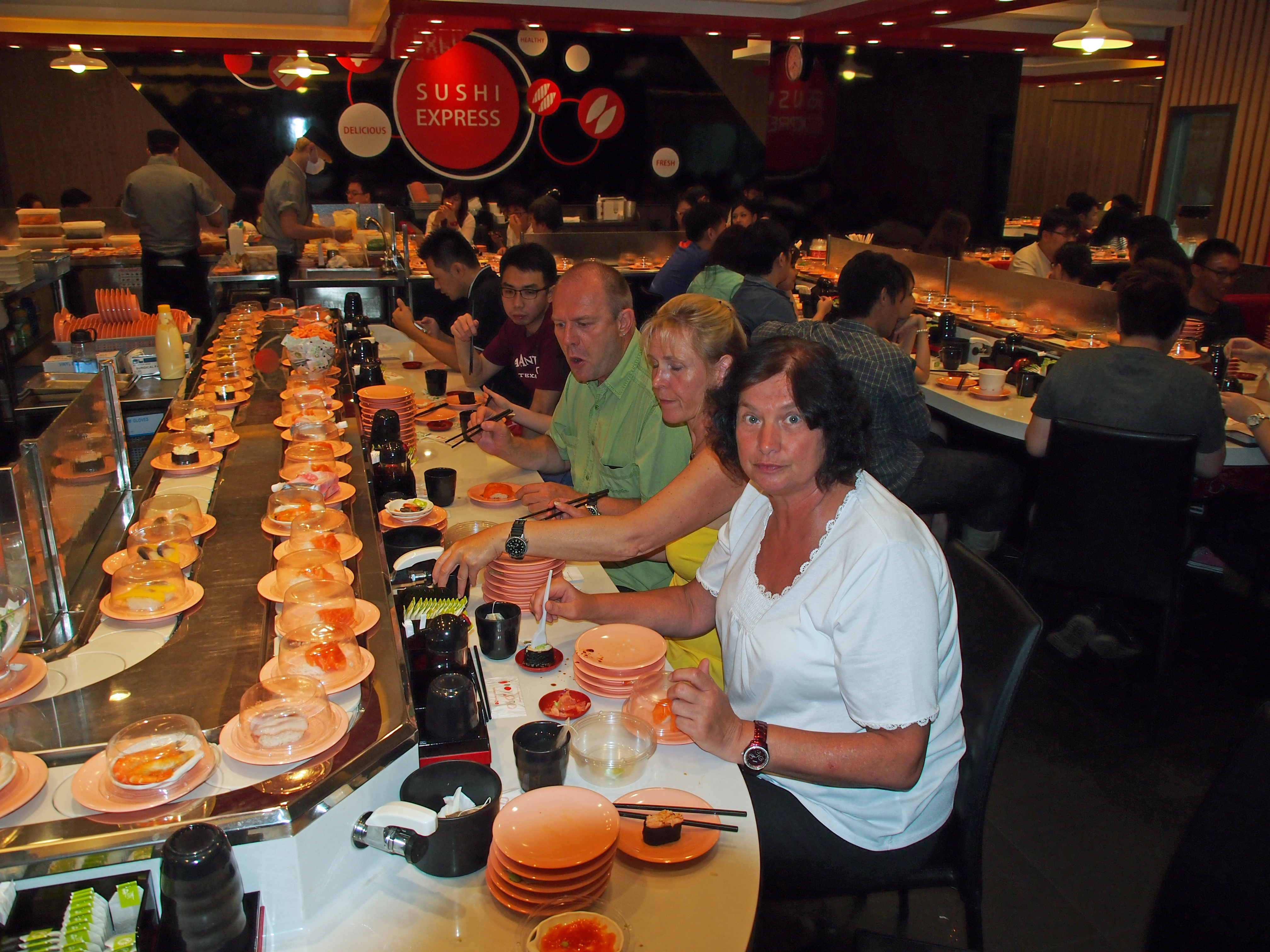 Heute Morgen ging es nach dem Frühstück erst mal zum Schoppen. Wir fuhren zum Raffles City Shopping Center und sind durch die vielen Geschäfte geschlendert. Danach ging es dann zum Botanischen Garten. Der ist nicht weit von der City sehr schön angelegt. Besonders gut hat mir der Orchideengarten gefallen. Zum Abendessen haben wir den "Sushi Express" in der Orchard Road ausprobiert. Jeder Teller der mit Sushi Häppchen auf dem Laufband vorbeikommt kostet ca. 1€. Also Lecker, preiswert und authentisch. Dann ging es noch zum SkyPark auf dem Marina Bay Sands Hotel. Die Aussicht über die Stadt mit den vielen Lichtern ist wirklich atemberaubend. Und zum Ausklang noch ein Eis bei ColdStone www.coldstonecreamery.com.sg . Hier wird das große Eisbällchen mit Zutaten nach eigenem Wunsch auf einer kalten Platte vermengt und dann in eine Waffel gegeben. Einfach lecker.