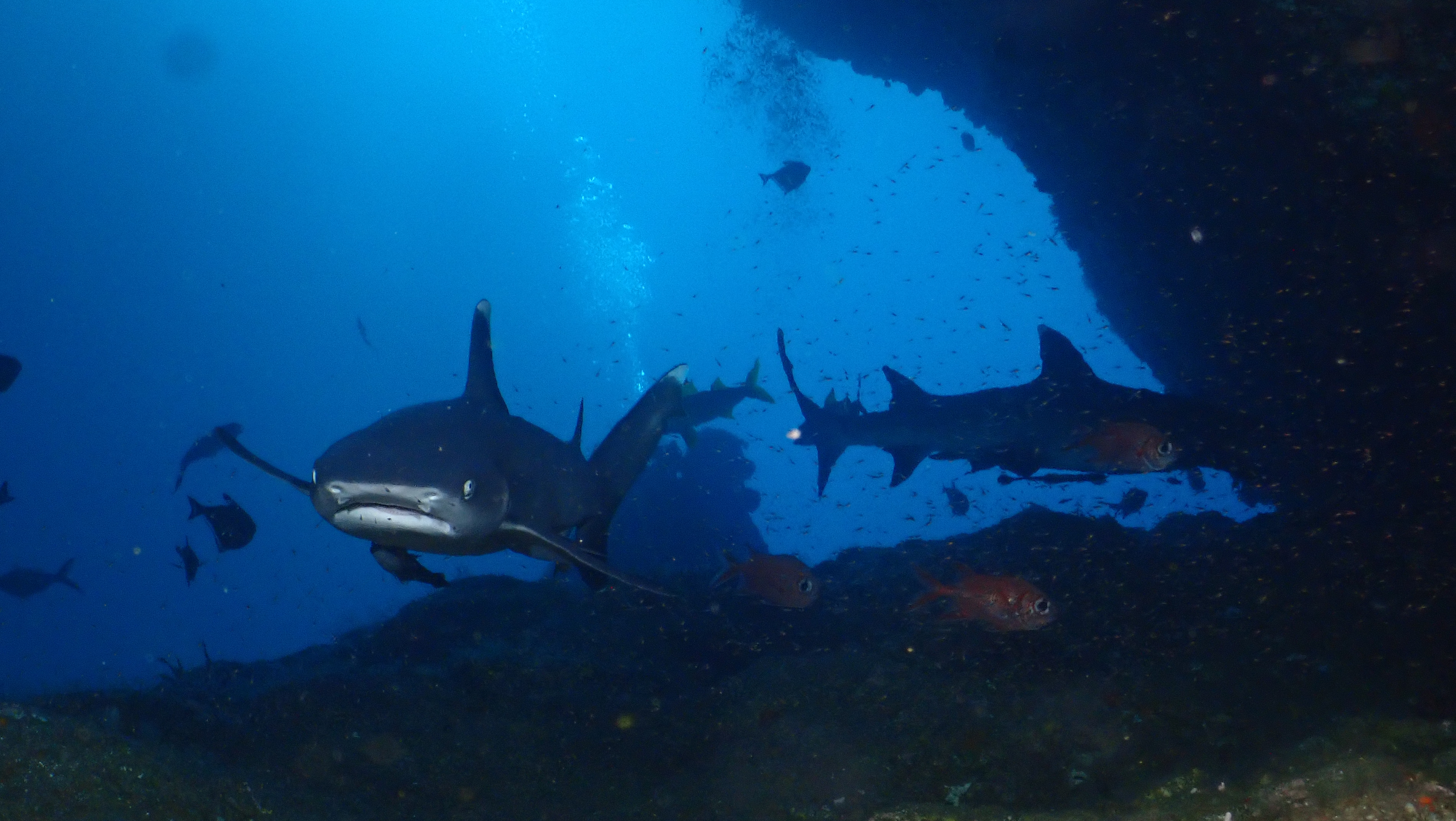 Heute sind wir an den beiden Inseln vor unserer Tauchbasis tauchen gegangen. Zuerst konnten wir in einer Höhle mehrere Weißspitzenriffhaie beobachten. Auf dem Rückweg konnten wir dann den lang ersehnten Mondfisch sehen. Wegen des trüben Wassers kann ich aber leider nicht mit Bildern dienen. Beim zweiten TG konnten wir einen Teppichhai sehen.