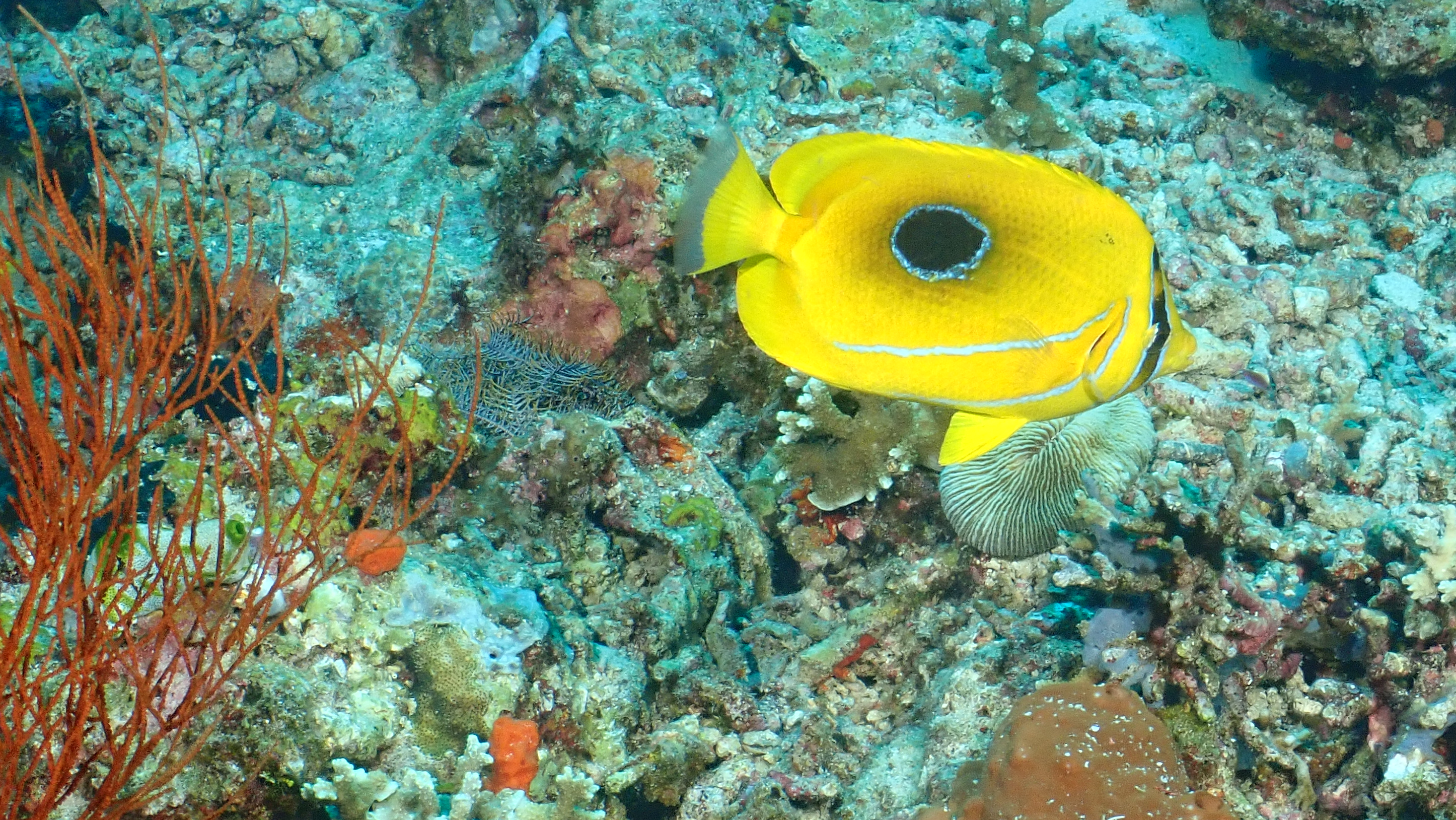 Heute haben wir unsere letzten TG auf Menjangan unternommen. Den Ersten ein sehr entspannter an Anchor Wreck unter anderem mit einer elektrischen Muschel und einem gelben Kofferfisch. Der Zweite dann am Tauchplatz "Under Water Cave". Hier findet man neben einer sehr schön bewachsenen und zerklüfteten Steilwand eine wunderschöne Höhle mit mehreren elektrischen Muscheln. Außerdem konnten wir einem Weichkorallen Krebs und mehrere Orang Utan Krabben finden.