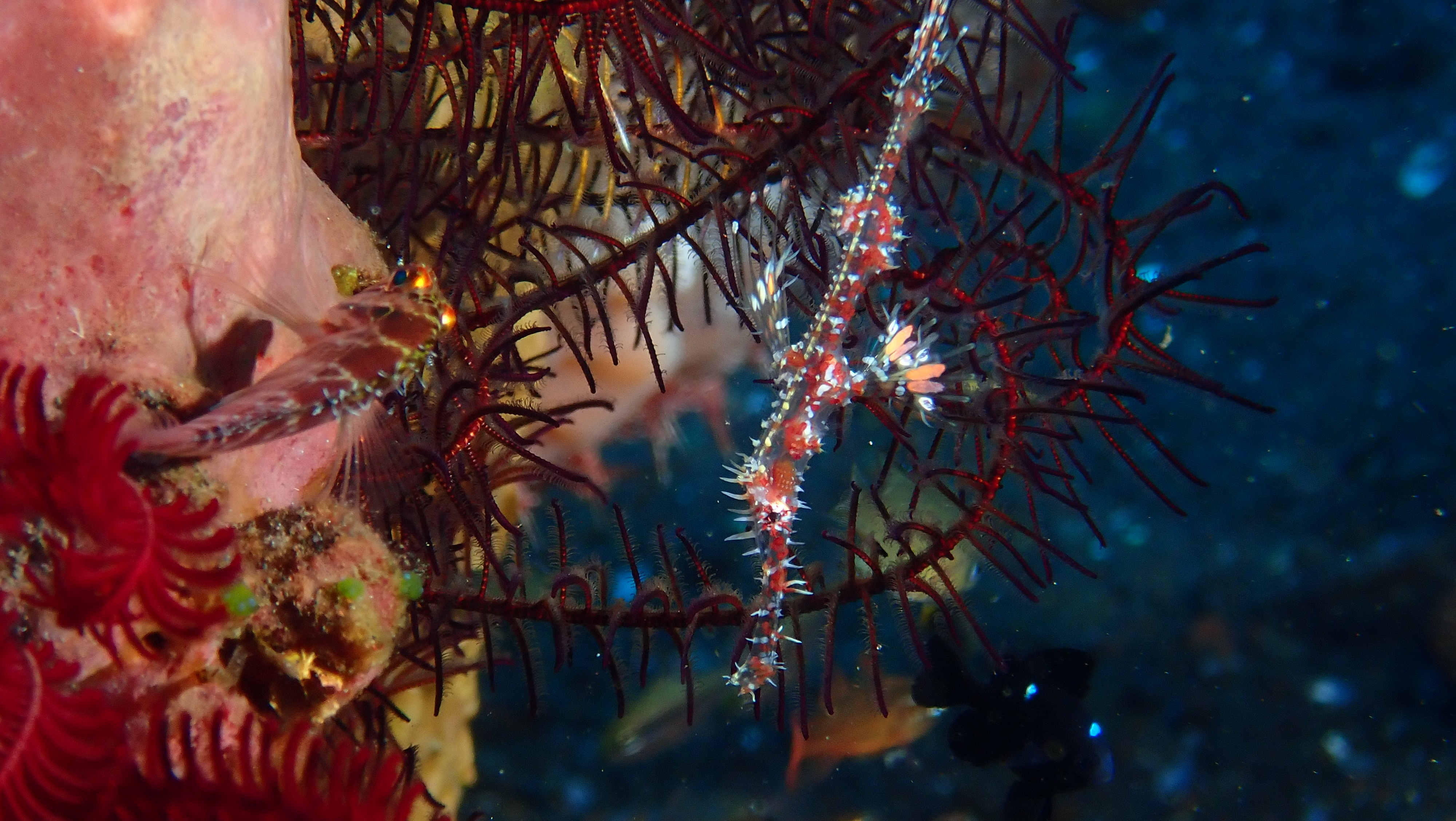 Heute haben wir 3 TG unternommen. Um 08:00 Uhr schon einen TG am Liberty Wrack. Dort haben wir 2 große Büffelkopf-Papageienfische gesehen. Aber es war viel Strömung somit bleibt mir der TG in keiner guten Erinnerung. Der zweite und dritte TG an den Makropunkten Seraya Secret und Batu Balah waren dagegen sehr schön und wir konnten Harlekin Garnelen, Schaukelfische, Garnelen, einen Geisterfetzenfisch und sehr viele Schnecken beobachten.