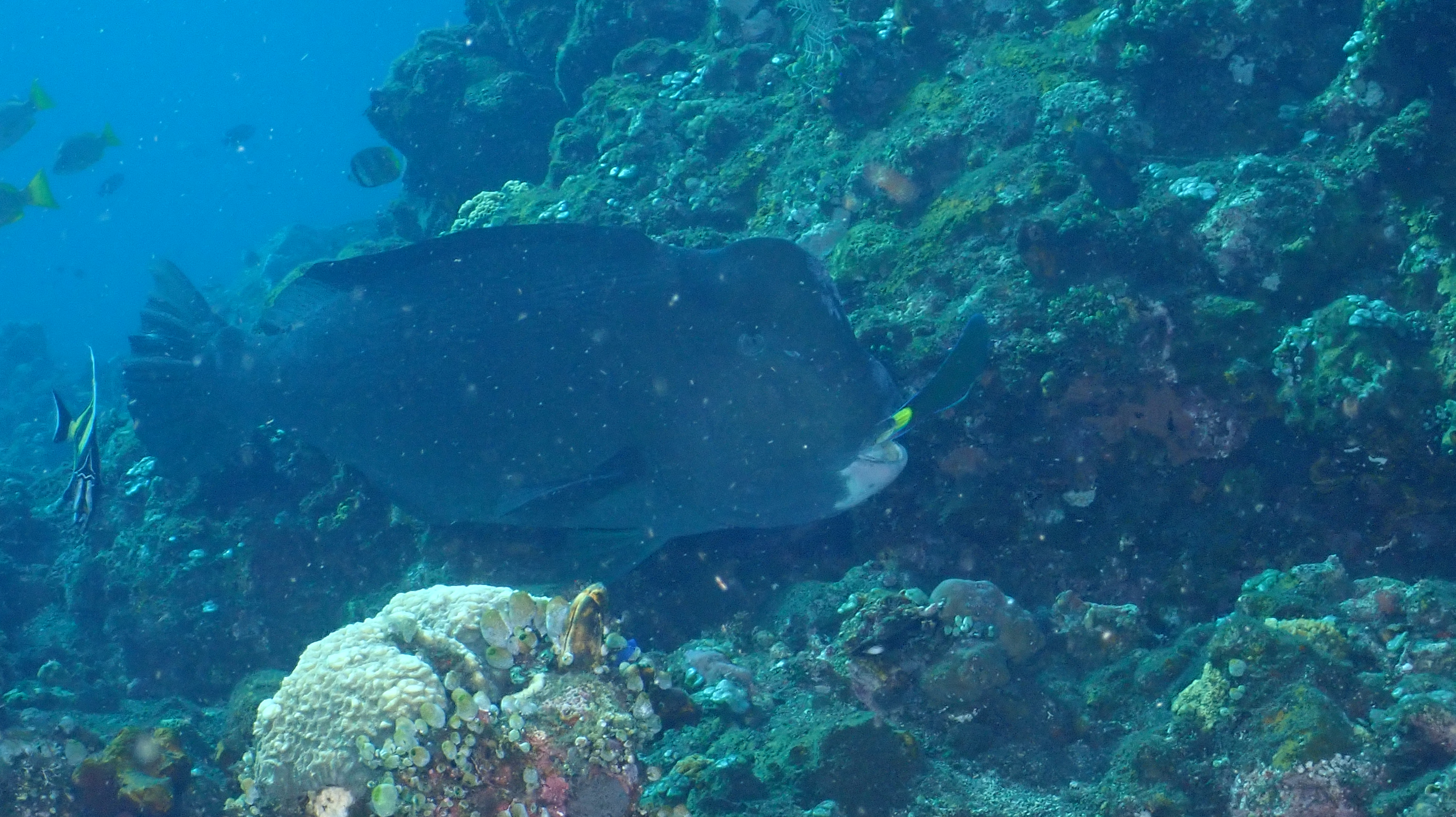 Heute ist unser letzter Tauchtag. Als erstes waren wir nur 500m vom Resort entfernt an der Steilwand. Hier konnten wir vor allem 2 Büffelkopf-Papageifische über 5 Minuten beobachten wie sie an uns ein paarmal vorbeizogen. Nach dem Frühstück waren wir dann auf "Malasti 1" wo wir wieder einen Geisterpfeifenfisch gefunden haben. Außerdem gab es hier, wie auf "Seraya Secret" unserem 3.TG, viele Schnecken von Stecknadelkopfgröße bis zu 7 cm sowie Garnelen und Krabben zu sehen.