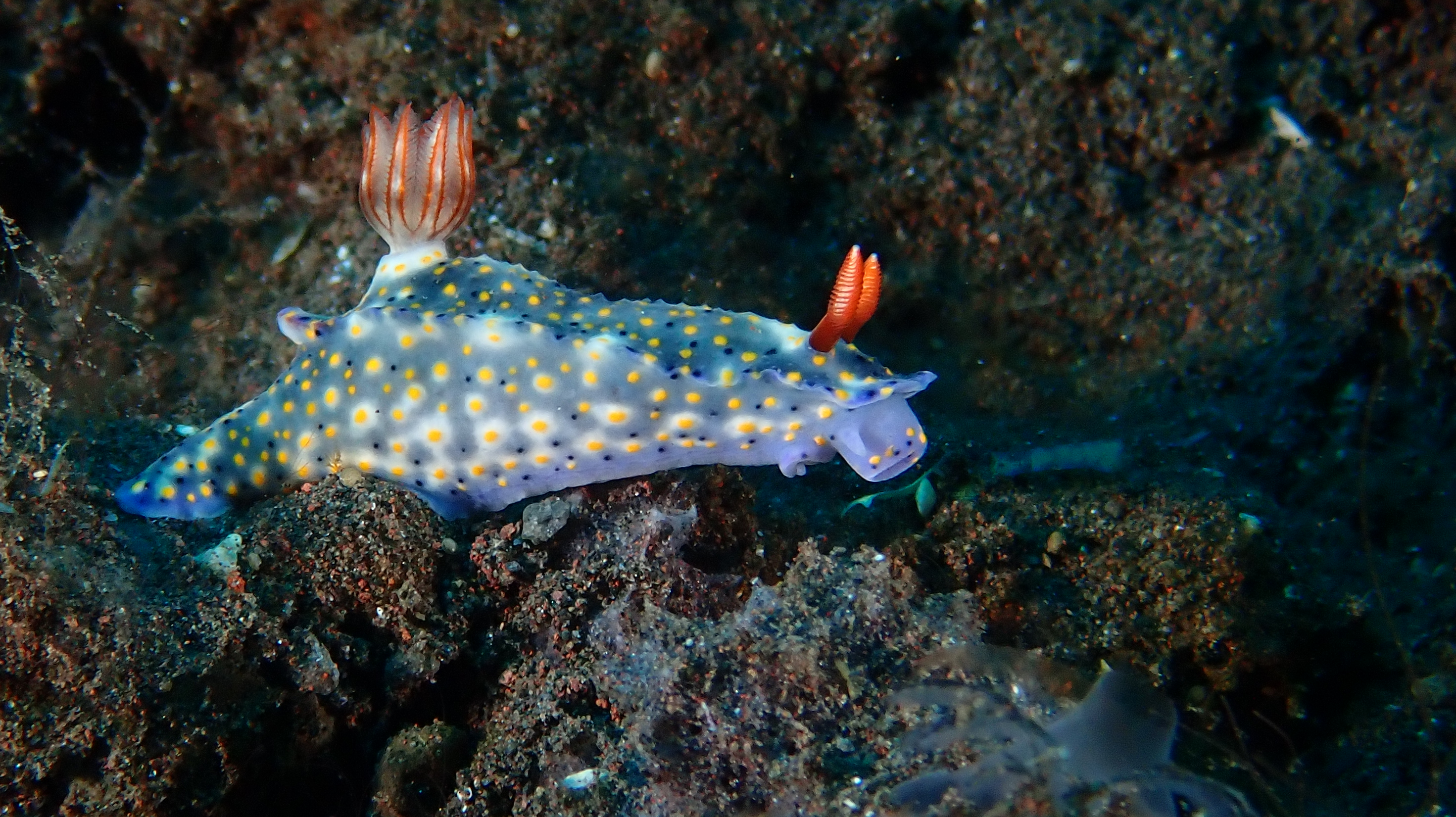 Heute ist unser letzter Tauchtag. Als erstes waren wir nur 500m vom Resort entfernt an der Steilwand. Hier konnten wir vor allem 2 Büffelkopf-Papageifische über 5 Minuten beobachten wie sie an uns ein paarmal vorbeizogen. Nach dem Frühstück waren wir dann auf "Malasti 1" wo wir wieder einen Geisterpfeifenfisch gefunden haben. Außerdem gab es hier, wie auf "Seraya Secret" unserem 3.TG, viele Schnecken von Stecknadelkopfgröße bis zu 7 cm sowie Garnelen und Krabben zu sehen.