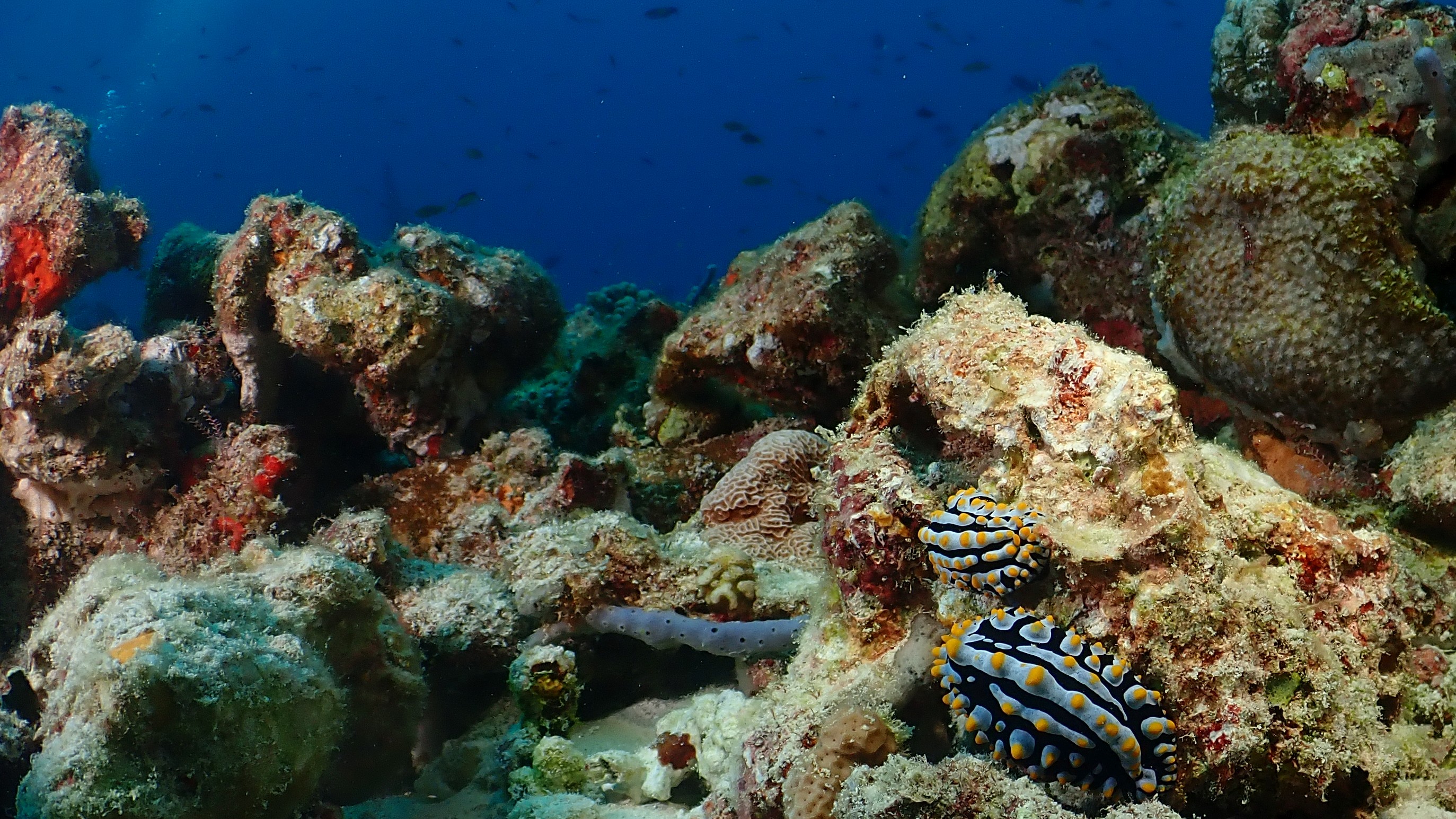 Am Vormittag war ich mit Peter am Fish Head wo wir sehr große Schwärme an Fischen und entsprechend viele Haie beobachten konnten. Nachmittags waren wir dann zu viert nur 5 Minuten entfernt am Bathala Thila wo das Riff noch deutlich besser ist.