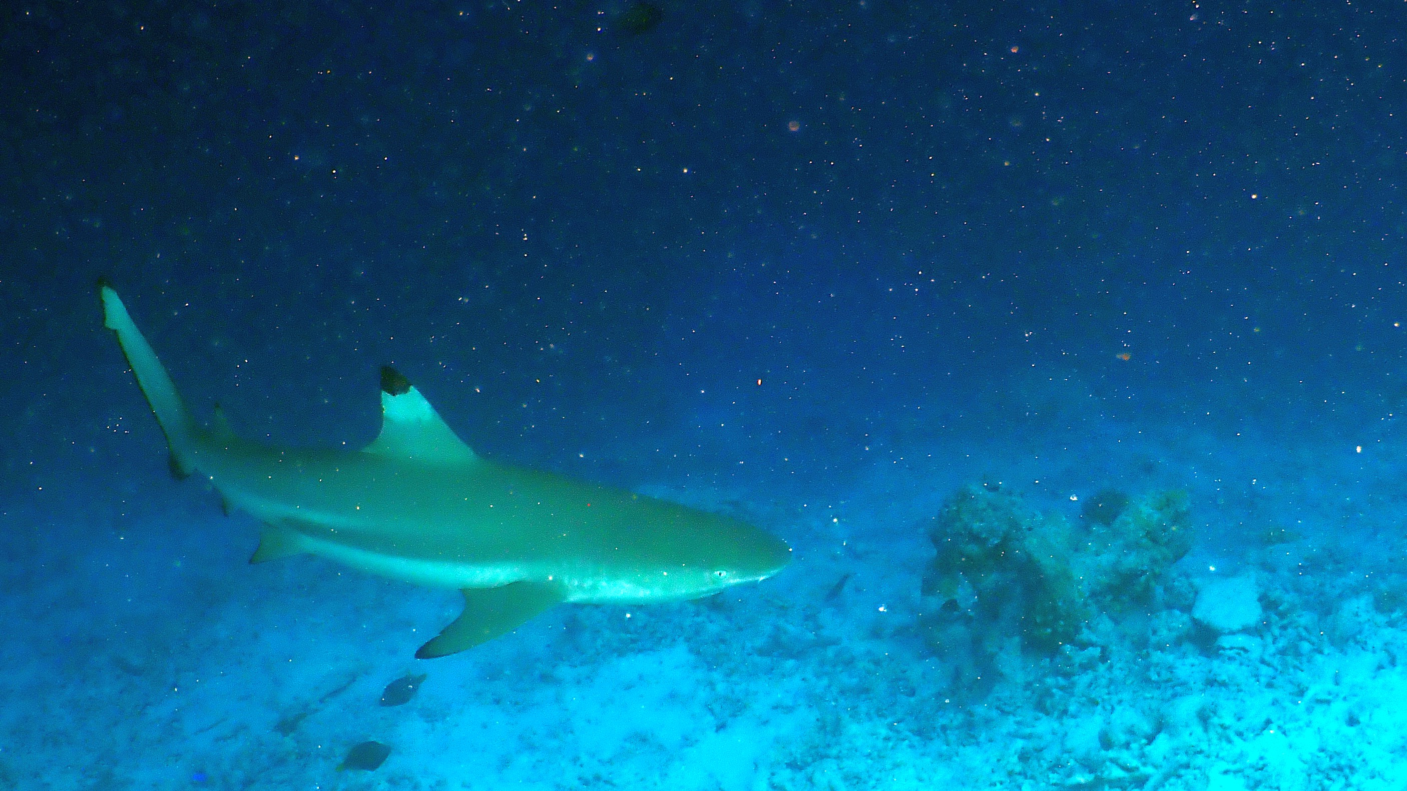 Heute war ich noch 4 mal am Hausriff tauchen wobei einmal für ca. 30 Minuten immer wieder die 2 gleichen Schwarzspitzenriffhaie um uns herum streiften. Aber auch die verschiedenen Fische an der Garnelen Putzerstation zu beobachten war interessant.