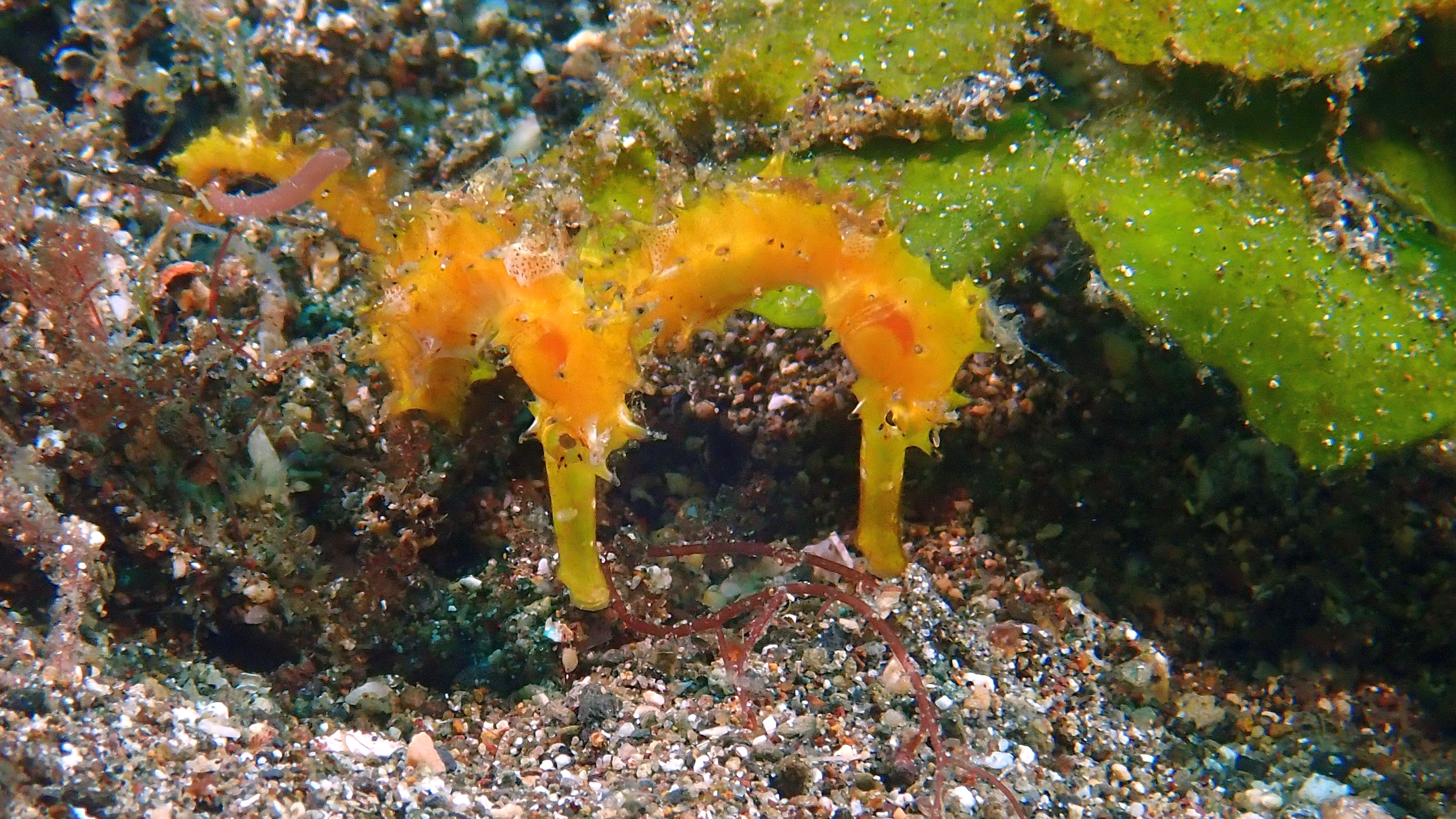 Heute haben wir 3 Tauchgänge unternommen. Der erste an einer Steilwand mit vielen Schnecken. Der zweite auf Sand war sehr schön. Unter anderen sahen wir einen Geisterpfeifenfisch, Seepferdchen und eine Flammenden Sepia. Der dritte war dann gleich vor dem Resort, mit dem Highlight eines haarigen Anglerfisches.
