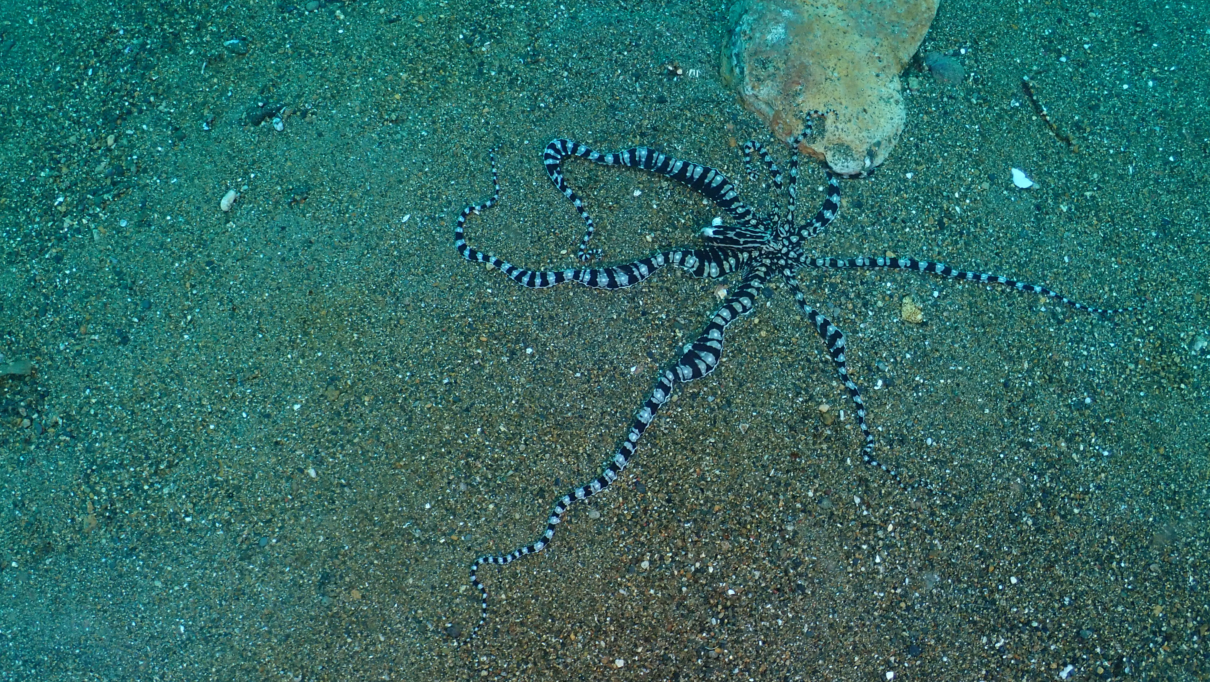Heute konnten wir wieder 3 sehr schöne Tauchgänge unternehmen. Beim ersten über Sandboden waren besonders die Wandlungs- und Versteckmöglichkeiten des Langarm-Oktopus beeindruckend. Aber auch die flammende Sepia mit ihren tollen Farben auf Nahrungssuche hat mir gefallen. Der zweite Tauchplatz beeindruckte durch seine schönen Korallen, bunte Federsterne und den Fischreichtum. Am dritten Tauchplatz waren die grünen Anglerfische für mich das Highlight.
