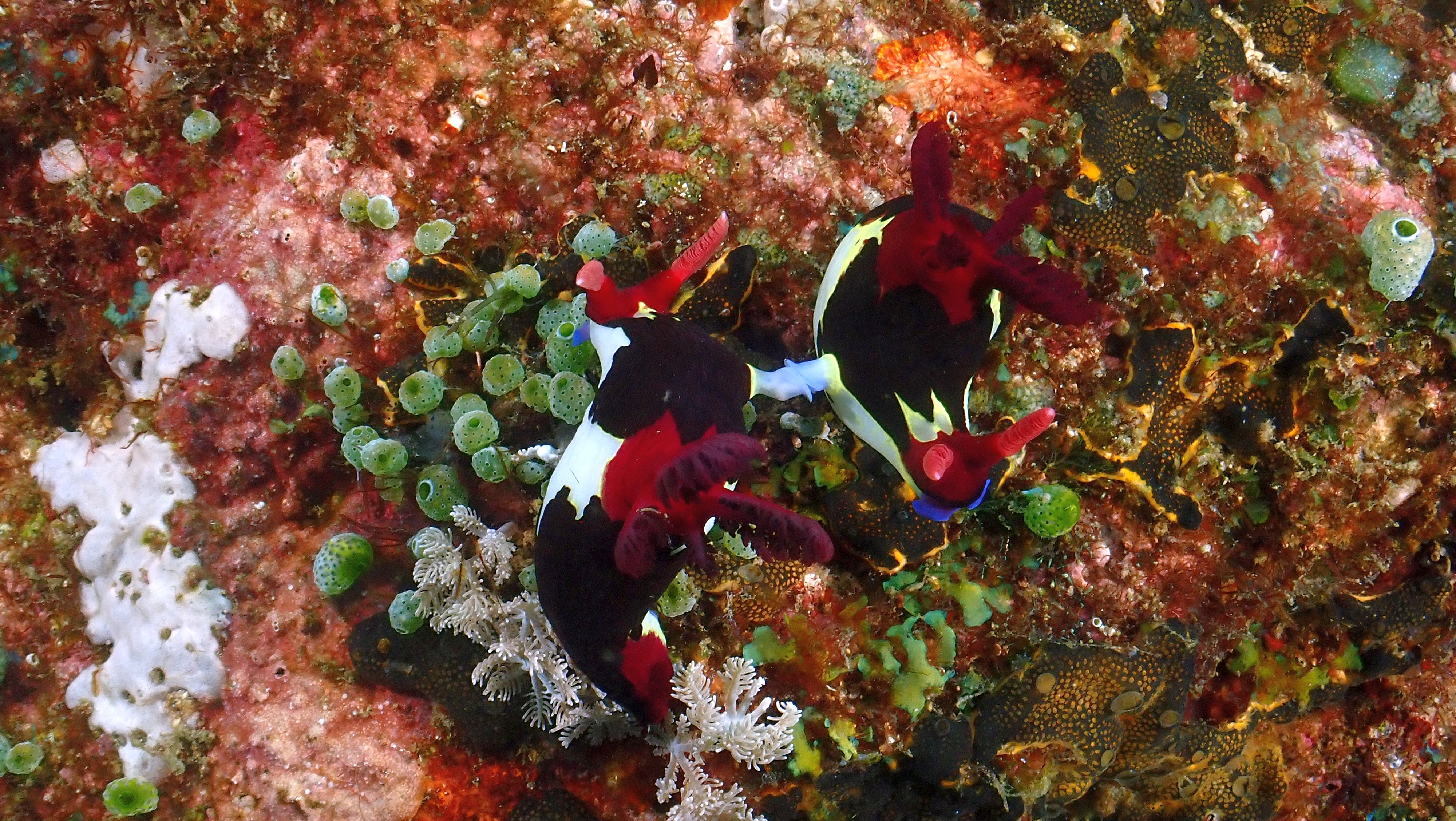 Heute konnten wir wieder 3 sehr schöne Tauchgänge unternehmen. Beim ersten über Sandboden waren besonders die Wandlungs- und Versteckmöglichkeiten des Langarm-Oktopus beeindruckend. Aber auch die flammende Sepia mit ihren tollen Farben auf Nahrungssuche hat mir gefallen. Der zweite Tauchplatz beeindruckte durch seine schönen Korallen, bunte Federsterne und den Fischreichtum. Am dritten Tauchplatz waren die grünen Anglerfische für mich das Highlight.