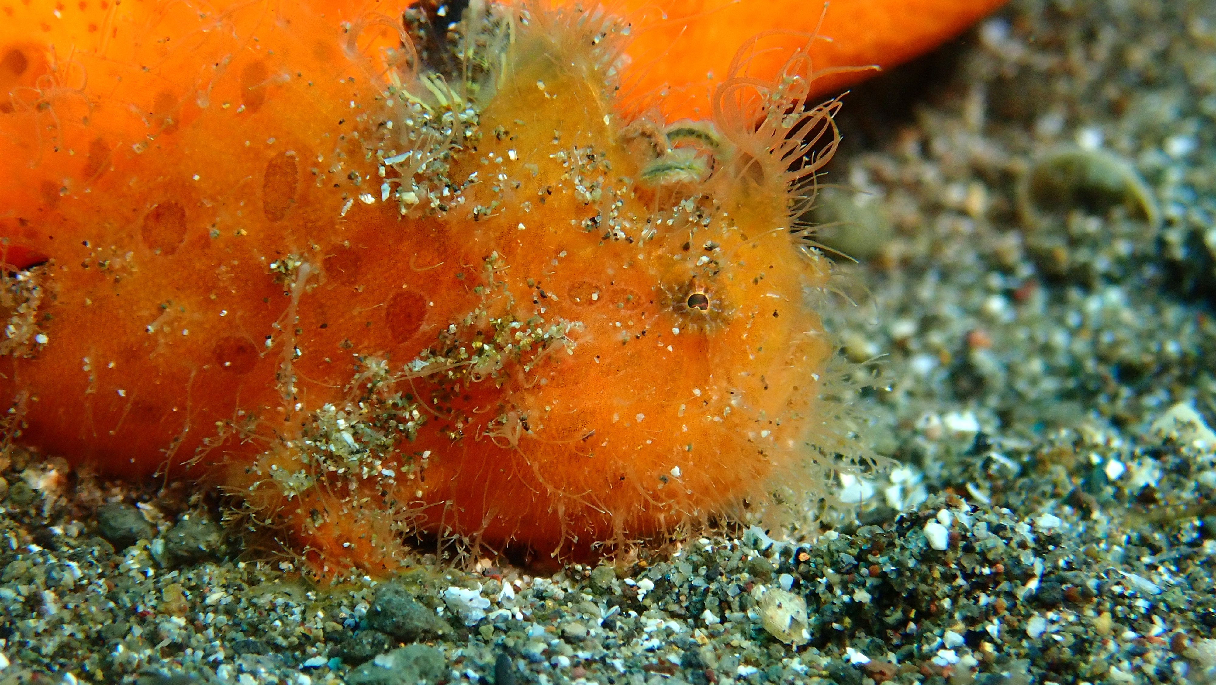 Das beeindruckendste bei den beiden Tauchgängen waren heute die 4 orangefarbenen kleinen Anglerfische, wobei einer sogar ein haariger Anglerfisch war.