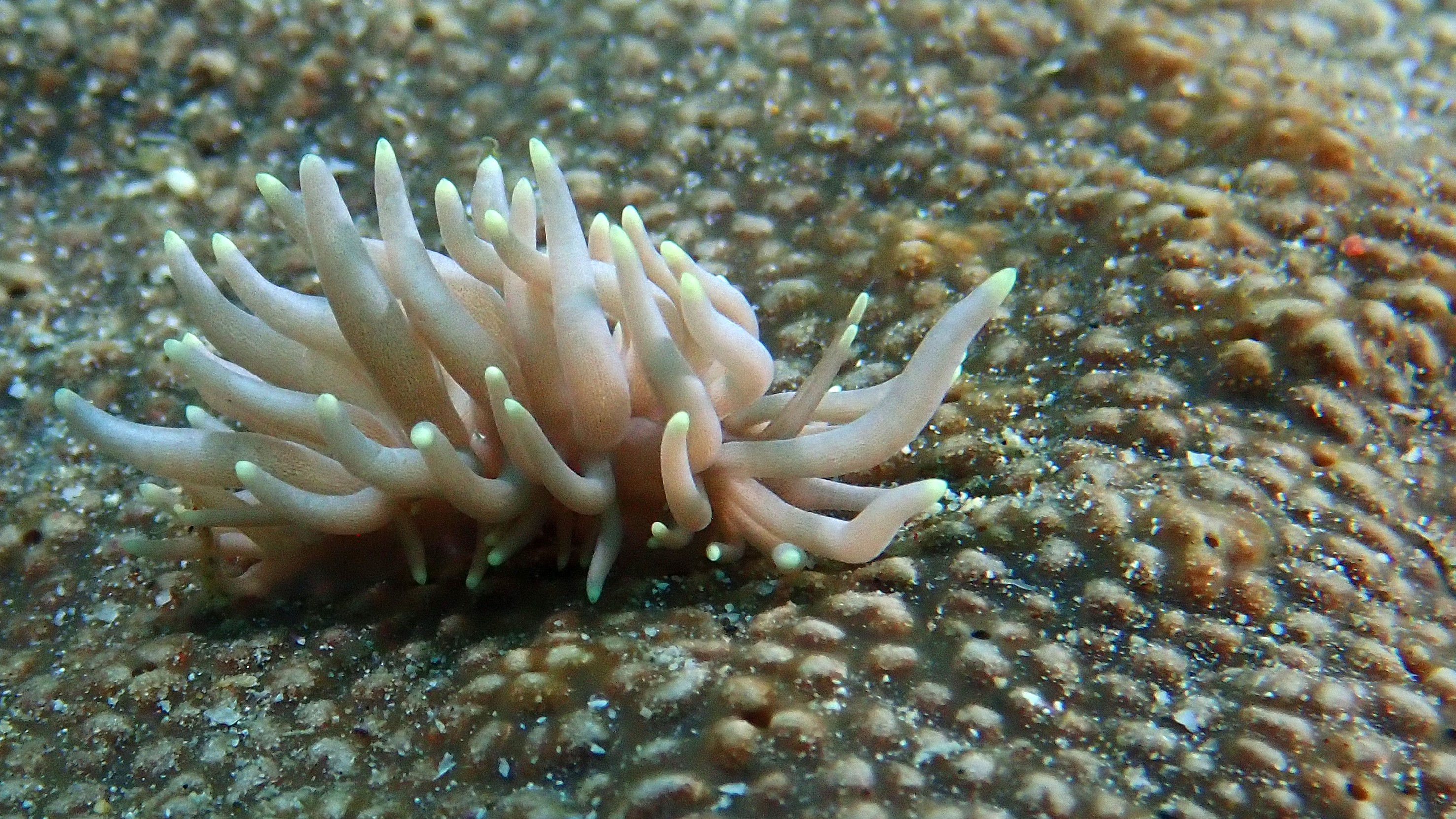 Bei den 2 Tauchgängen haben wir heute ein Seepferdchen, ein Pygmäen-Seepferdchen, eine Seeschlange, einige Krebse und wieder viele Schnecken gesehen.