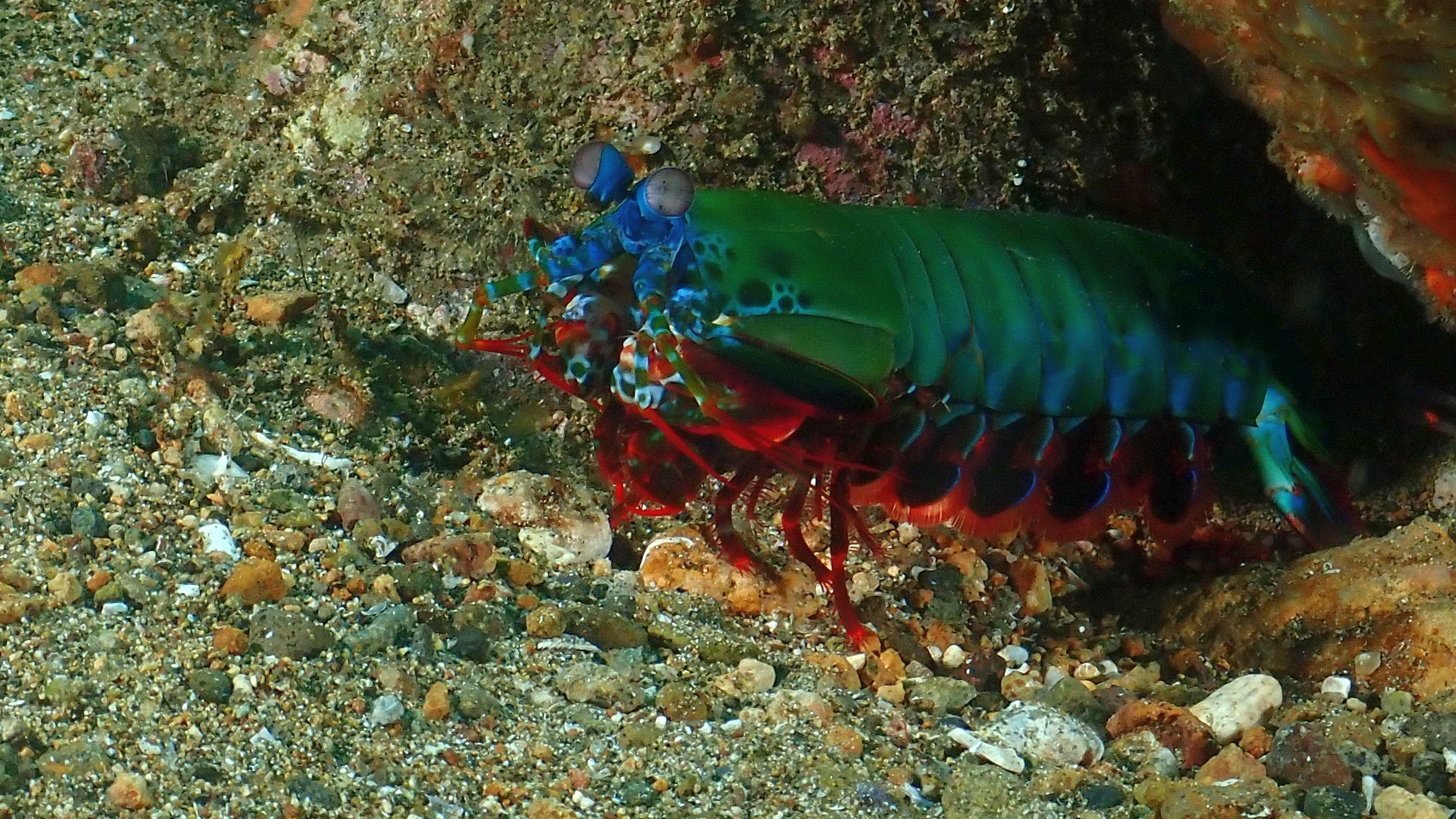 Heute waren wir wieder dreimal tauchen. Zweimal haben wir einen „Finger Leierfisch“ gesehen. Auch die winzige „Blattschaf“ Schnecke und die "Blue Dragon" Schnecken jeweils mit Gelege waren beeindruckend. Schön waren auch die 3 Anglerfische. Aber besonders gefallen hat mir heute, dass ich brauchbare Fotos von den Pygmäen Seepferdchen machen konnte.