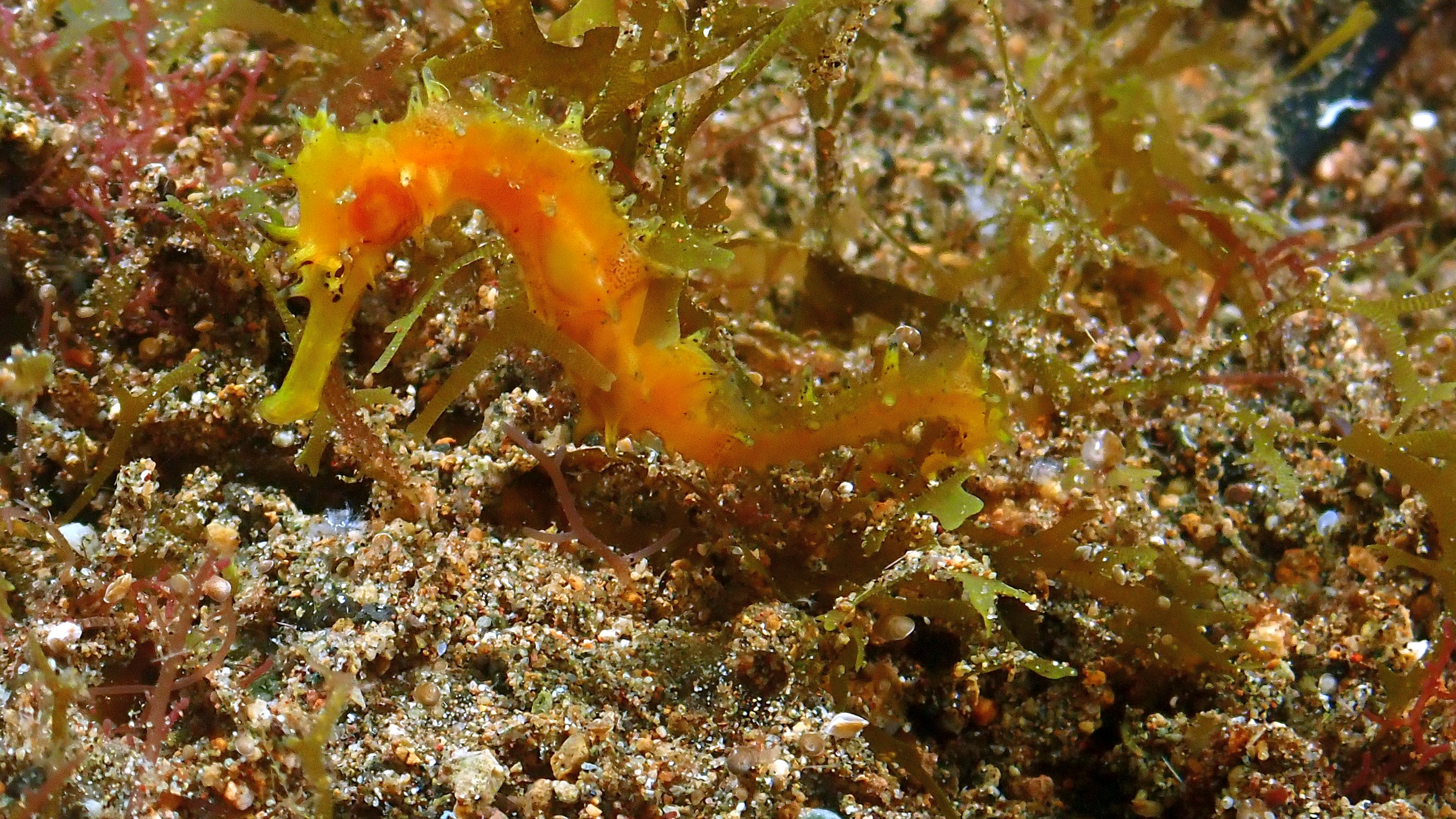 Heute waren wir wieder dreimal tauchen. Zweimal haben wir einen „Finger Leierfisch“ gesehen. Auch die winzige „Blattschaf“ Schnecke und die "Blue Dragon" Schnecken jeweils mit Gelege waren beeindruckend. Schön waren auch die 3 Anglerfische. Aber besonders gefallen hat mir heute, dass ich brauchbare Fotos von den Pygmäen Seepferdchen machen konnte.