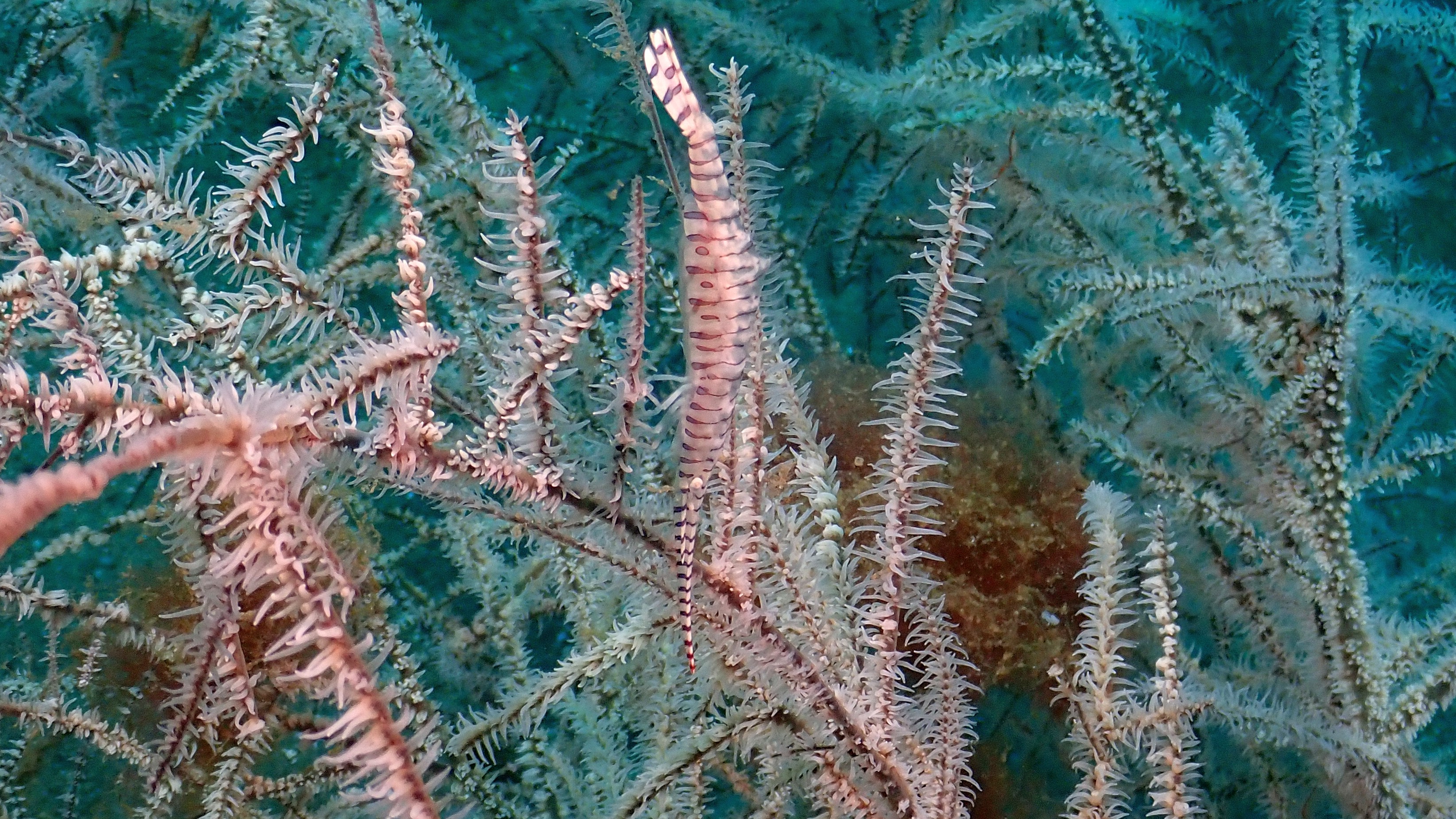 Während des ersten Tauchgangs haben wir einen Tiger-Shrimp, einen kleinen weißen Anglerfisch und an einer weißen Gorgonie dann Korallengarnelen und Seegras-Feilenfische gefunden. Beim zweiten Tauchgang ist uns gleich eine Schildkröte begegnet. Daneben konnten wir uns noch die Eier des Clownfisches, Schnepfenmesserfische und einen Drachenkopf im Sand ansehen. Beim dritten Tauchgang an einer schönen Steilwand fanden wir Schnecken, eine Muräne und viele Rifffische.