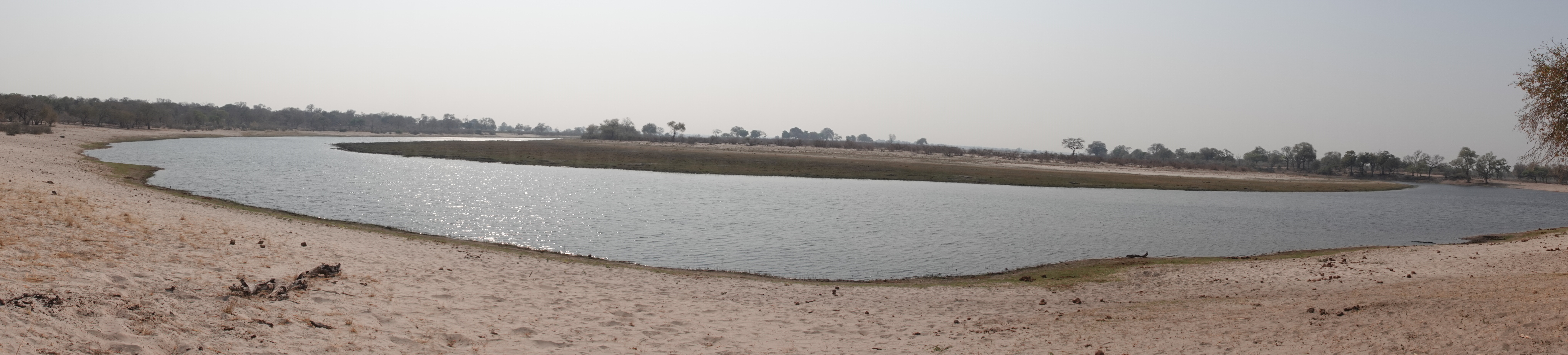 Heute ließen wir das Auto stehen und nahmen an einem von der Lodge organisierten Game Drive teil. Am Morgen fuhren wir zunächst mit dem Boot ein Stück entlang des Kwando Rivers, bevor es im Geländewagen weiter durch den Busch ging. Unser Ziel war die „Horseshoe Bend“ – diesmal von der gegenüberliegenden Seite im Vergleich zum Vortag. Dort hatten wir die Gelegenheit, auszusteigen, die beeindruckende Landschaft zu genießen und eine Erfrischung zu trinken.