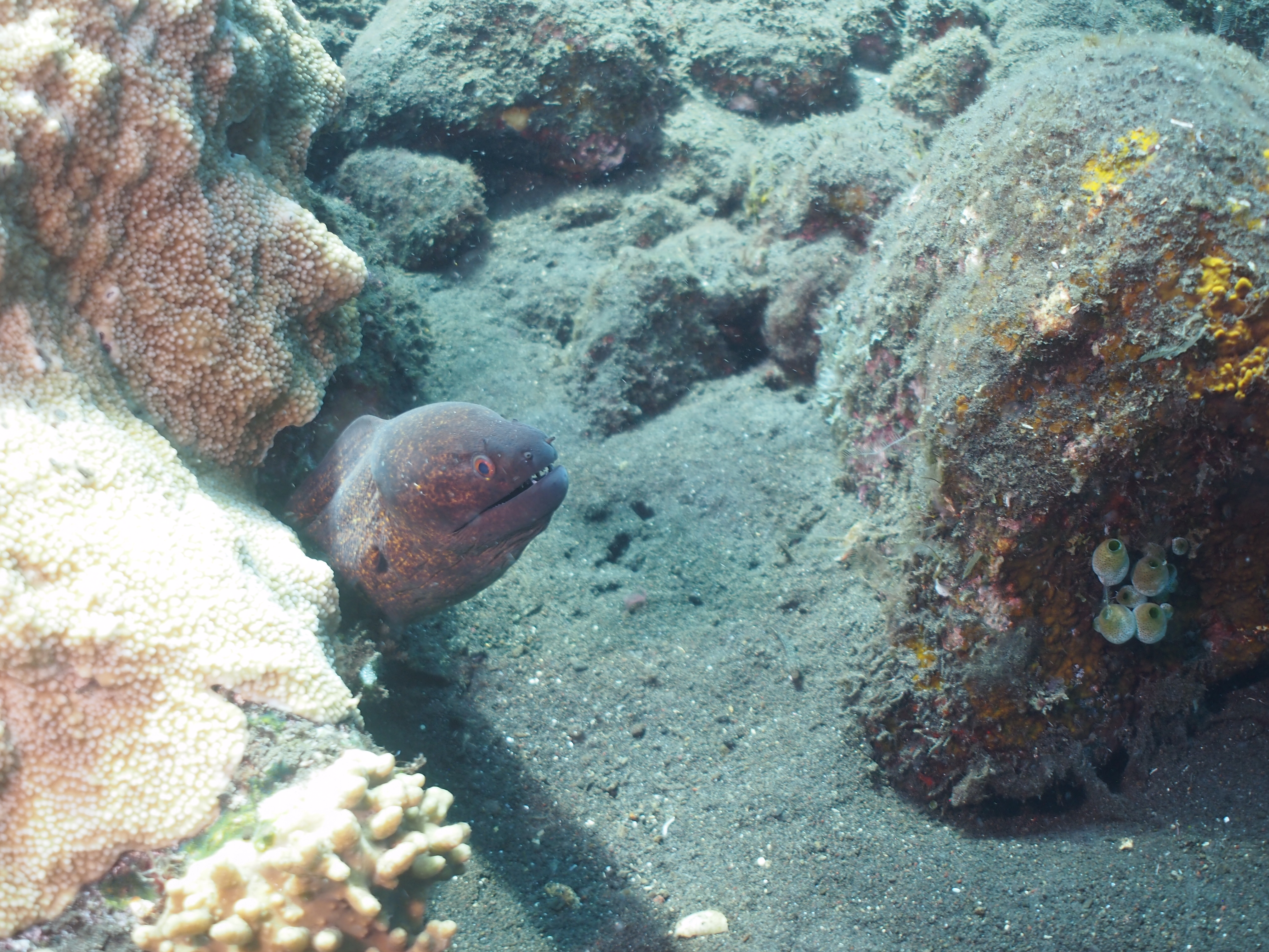 Wir wurden um 9:00 Uhr von den Ena Divers am Hotel abgeholt und sind die 500 m zur Liberty gefahren worden. Der erste Tauchgang war um das Wrack herum um das sich viele Fische tummeln und welches vollständig mit Korallen bewachsen ist. Unser Guide Madi zeigte uns sogar 2 Pygmäen-Seepferdchen welche allerdings auf 30 m waren wodurch wir nicht sehr lange bleiben konnten. Der zweite Tauchgang ging dann rechts am Wrack vorbei. Dort konnten wir 2 Weißspitzenriffhaie beobachten welche ein paarmal an uns vorbei gezogen sind. Auch bekamen wir von Madi viele kleine Schnecken und anderes Kleingetier gezeigt. Ein sehr schöner Tauchgang. Um 18:00 Uhr wurden wir dann wieder vom Hotel zum Nachttauchgang bei der Liberty abgeholt. Bei diesem hatten wir leider viel Strömung was für einen Nachttauchgang, wenn man keinen Drift macht, doch sehr störend ist.