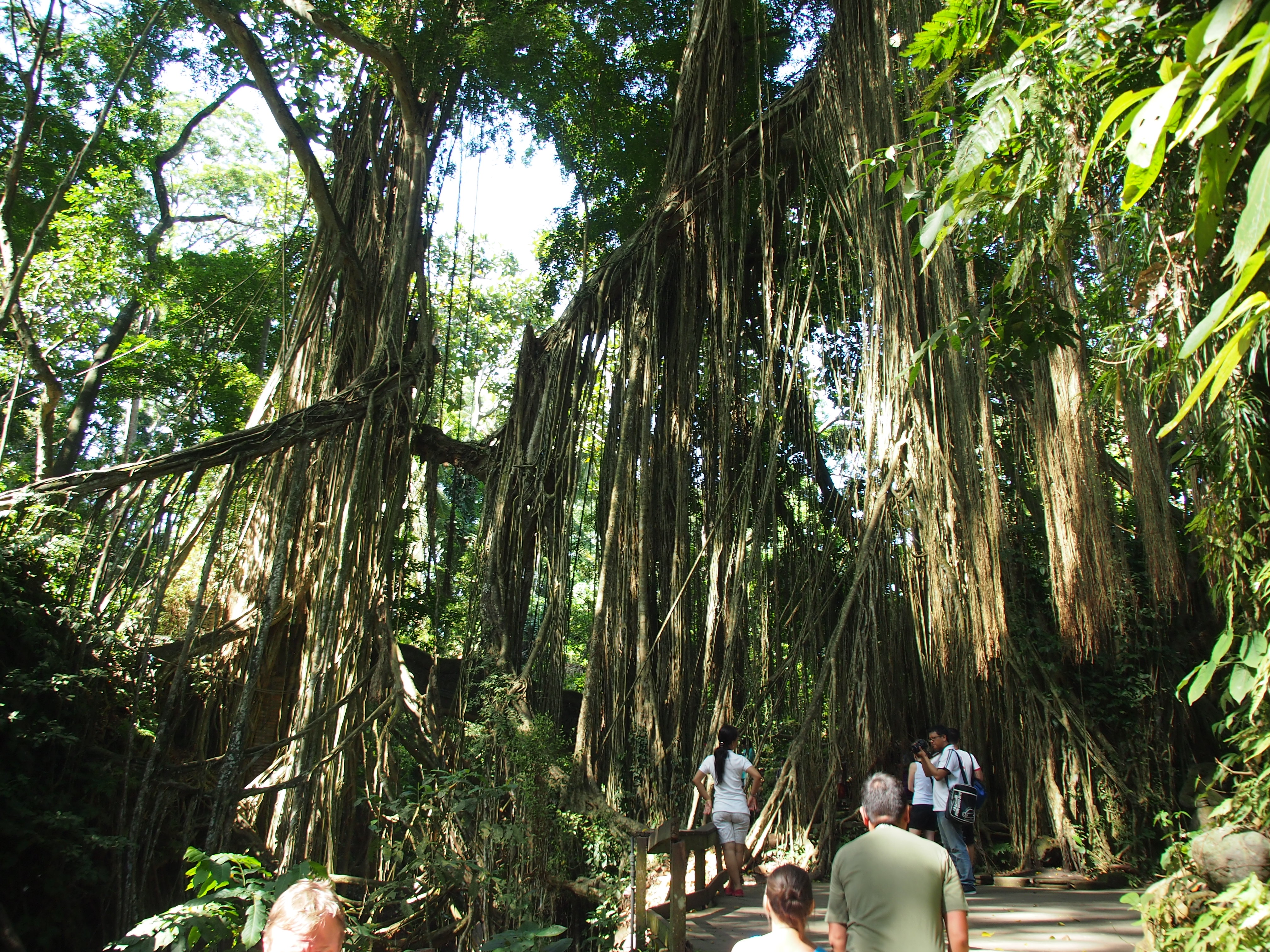 Um 09:00 Uhr ging heute Morgen unsere Rundreise mit der Fahrt zurück nach Sanur weiter. Als erstes sind wir in den Affenwald gefahren. Dort kann man wunderschön beobachten wie die Makaken durch die Bäume und über die Statuen klettern. Auch ein riesiger Ficus Benjamin mit Luftwurzeln über 30 m im Durchmesser verteilt haben wir dort bestaunt. Danach ging es weiter zu einer wunderschön im Hang gelegen Reis-Terrasse. Sehr interessant war auch ein Besuch in einem kleinen Gewürz und Kaffeehandel. Wir sahen die verschiedenen Bäume und Früchte welche hier wachsen. Auch konnten wir die verschiedenen Stufen der Kaffeeherstellung beobachten. Einschließlich der Mungos welche die Kaffeebohnen fressen und dann wieder ausscheiden was dann den berühmten Luwak Kaffee ergibt. All diese verschiedenen Sorten konnten wir hier probieren. Nach dem Mittagessen sind wir dann noch in eine Holzschnitzerei gefahren wo Peter sich einen Barong und Claudia sich einen Elefanten erhandelt haben. Auf speziellen Wunsch von Peter ging es dann noch zum Harley Händler bevor wir unser ausgewaschenes und getrocknetes Tauchgepäck in der Ena Tauchbasis in Empfang nehmen konnten. Dort haben wir dann den einen zusätzlichen Tauchtag bezahlt und bekamen eine landestypische Schnitzerei mit unserem Namen geschenkt. Angekommen im Puri Mesari Hotel haben wir die letzte Gelegenheit genutzt uns nochmal eine Massage zu gönnen und haben dann auch im Hotel lecker zu Abend gegessen.