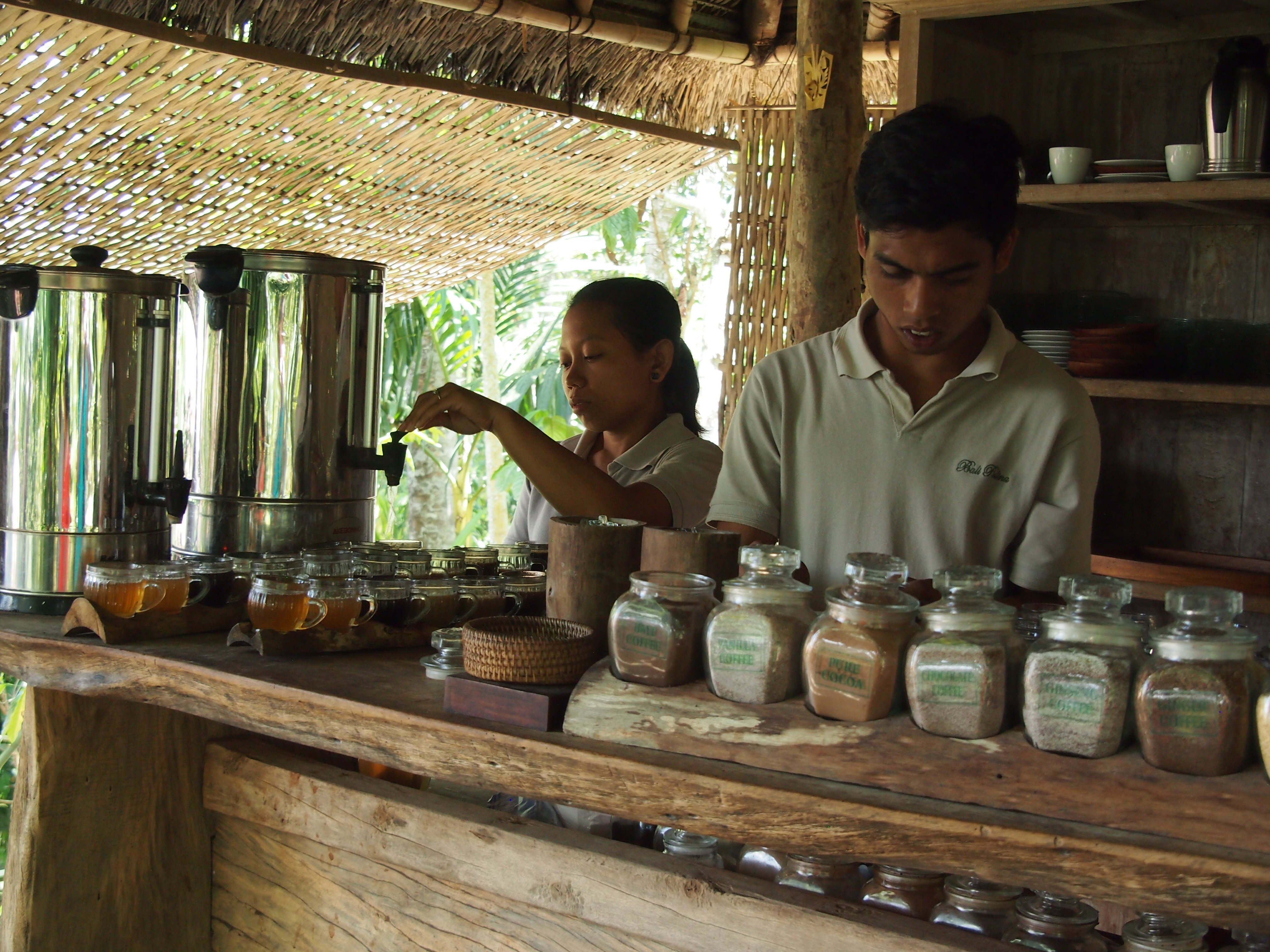 Um 09:00 Uhr ging heute Morgen unsere Rundreise mit der Fahrt zurück nach Sanur weiter. Als erstes sind wir in den Affenwald gefahren. Dort kann man wunderschön beobachten wie die Makaken durch die Bäume und über die Statuen klettern. Auch ein riesiger Ficus Benjamin mit Luftwurzeln über 30 m im Durchmesser verteilt haben wir dort bestaunt. Danach ging es weiter zu einer wunderschön im Hang gelegen Reis-Terrasse. Sehr interessant war auch ein Besuch in einem kleinen Gewürz und Kaffeehandel. Wir sahen die verschiedenen Bäume und Früchte welche hier wachsen. Auch konnten wir die verschiedenen Stufen der Kaffeeherstellung beobachten. Einschließlich der Mungos welche die Kaffeebohnen fressen und dann wieder ausscheiden was dann den berühmten Luwak Kaffee ergibt. All diese verschiedenen Sorten konnten wir hier probieren. Nach dem Mittagessen sind wir dann noch in eine Holzschnitzerei gefahren wo Peter sich einen Barong und Claudia sich einen Elefanten erhandelt haben. Auf speziellen Wunsch von Peter ging es dann noch zum Harley Händler bevor wir unser ausgewaschenes und getrocknetes Tauchgepäck in der Ena Tauchbasis in Empfang nehmen konnten. Dort haben wir dann den einen zusätzlichen Tauchtag bezahlt und bekamen eine landestypische Schnitzerei mit unserem Namen geschenkt. Angekommen im Puri Mesari Hotel haben wir die letzte Gelegenheit genutzt uns nochmal eine Massage zu gönnen und haben dann auch im Hotel lecker zu Abend gegessen.