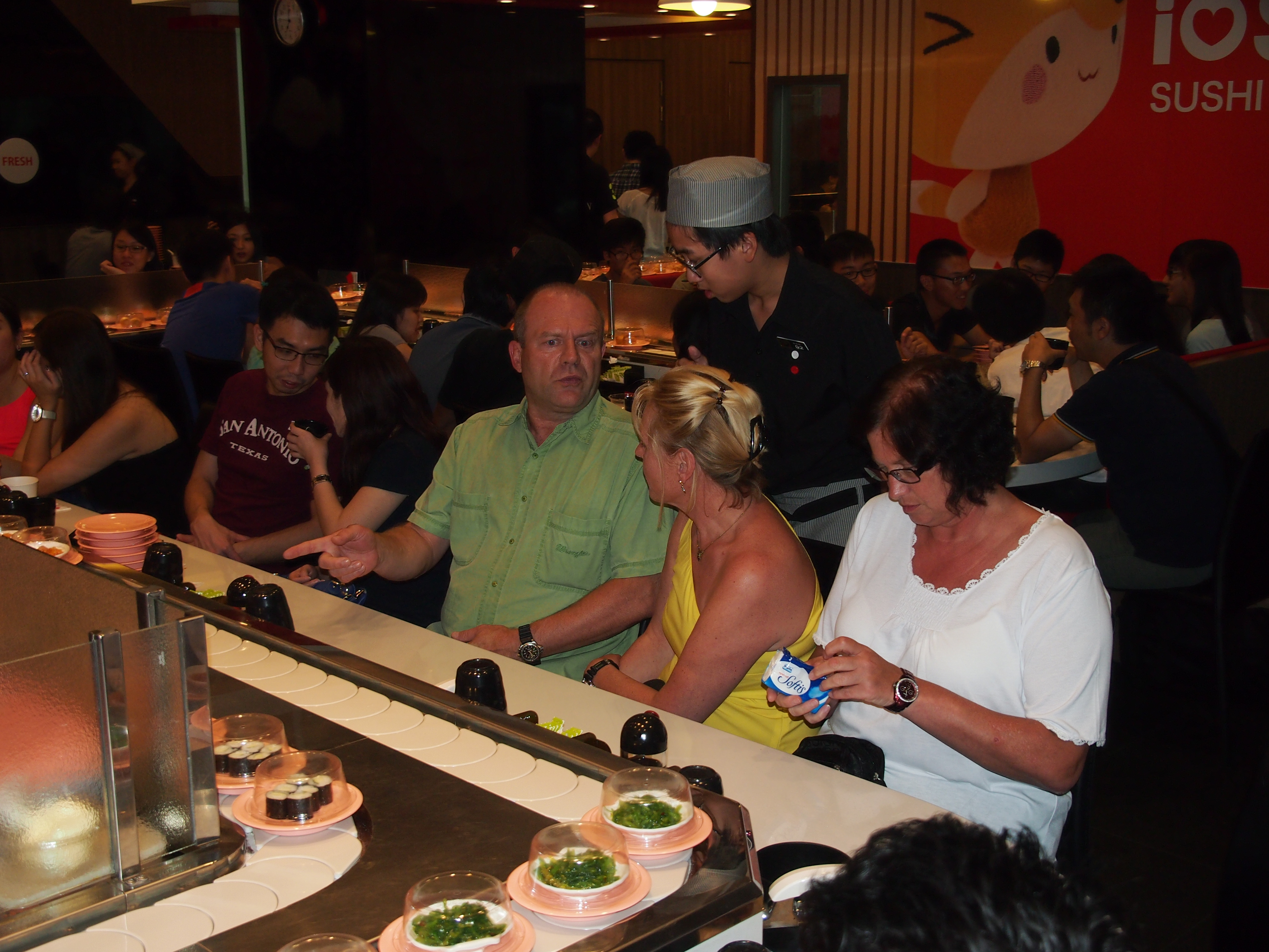 Heute Morgen ging es nach dem Frühstück erst mal zum Schoppen. Wir fuhren zum Raffles City Shopping Center und sind durch die vielen Geschäfte geschlendert. Danach ging es dann zum Botanischen Garten. Der ist nicht weit von der City sehr schön angelegt. Besonders gut hat mir der Orchideengarten gefallen. Zum Abendessen haben wir den "Sushi Express" in der Orchard Road ausprobiert. Jeder Teller der mit Sushi Häppchen auf dem Laufband vorbeikommt kostet ca. 1€. Also Lecker, preiswert und authentisch. Dann ging es noch zum SkyPark auf dem Marina Bay Sands Hotel. Die Aussicht über die Stadt mit den vielen Lichtern ist wirklich atemberaubend. Und zum Ausklang noch ein Eis bei ColdStone www.coldstonecreamery.com.sg . Hier wird das große Eisbällchen mit Zutaten nach eigenem Wunsch auf einer kalten Platte vermengt und dann in eine Waffel gegeben. Einfach lecker.