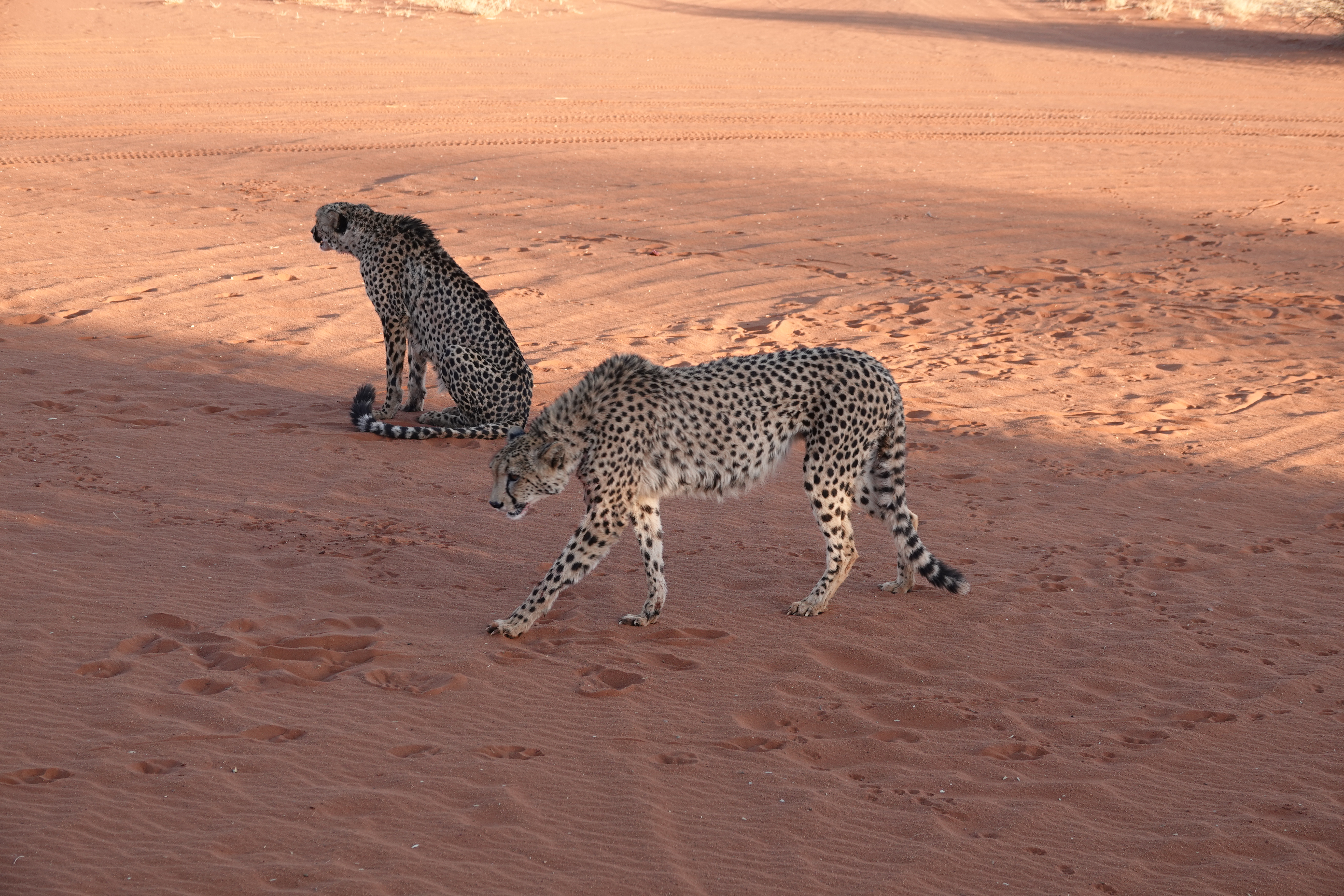 Das absolute Highlight war jedoch die Gepardenfütterung. Die Bagatelle Lodge kümmert sich um junge Geparden, die verwaist sind und ohne Hilfe nicht überlebt hätten. Es war faszinierend zu sehen, wie die Geparden dem Rangerjeep hinterherjagten, um ihre Mahlzeit zu erhalten.
