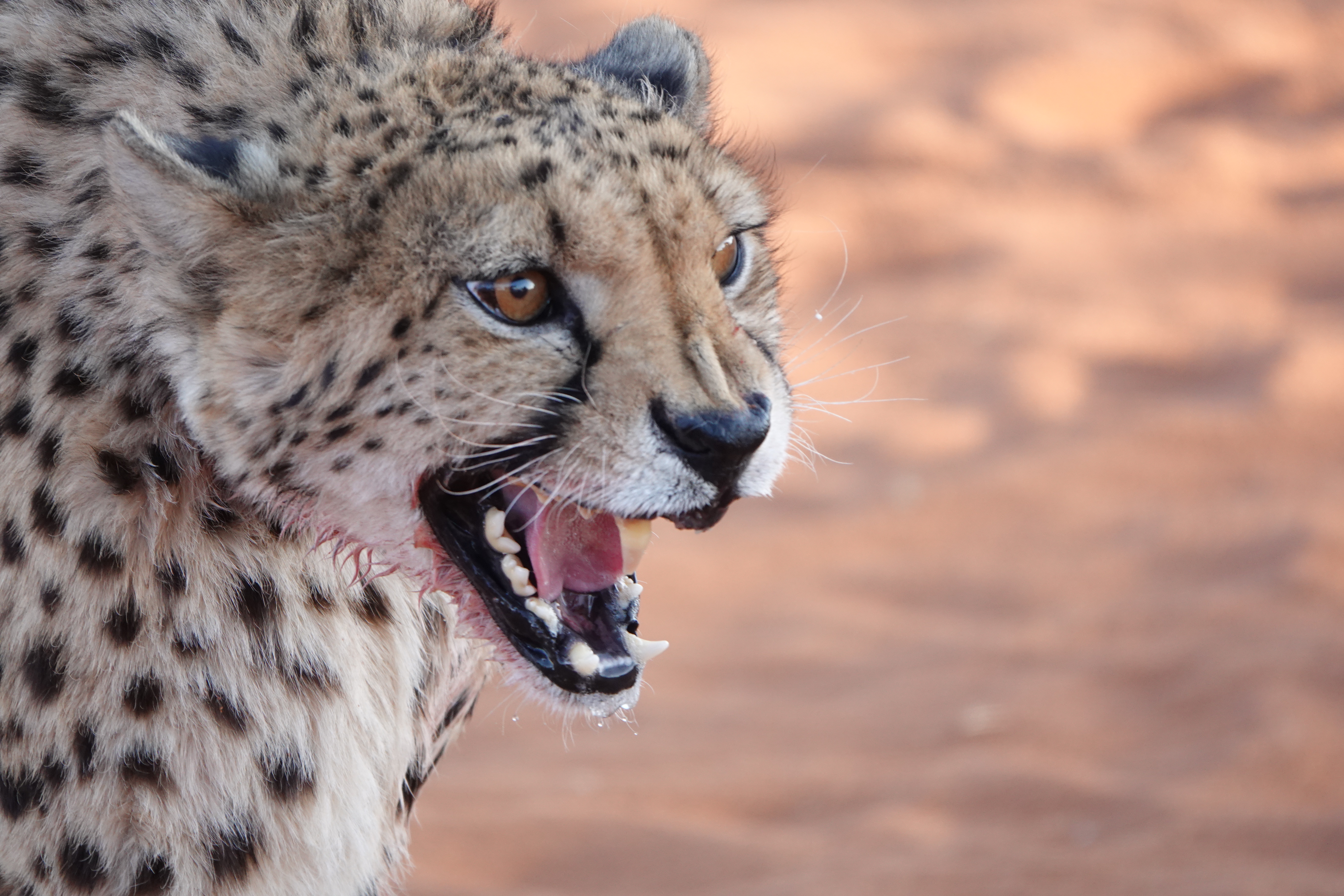 Das absolute Highlight war jedoch die Gepardenfütterung. Die Bagatelle Lodge kümmert sich um junge Geparden, die verwaist sind und ohne Hilfe nicht überlebt hätten. Es war faszinierend zu sehen, wie die Geparden dem Rangerjeep hinterherjagten, um ihre Mahlzeit zu erhalten.