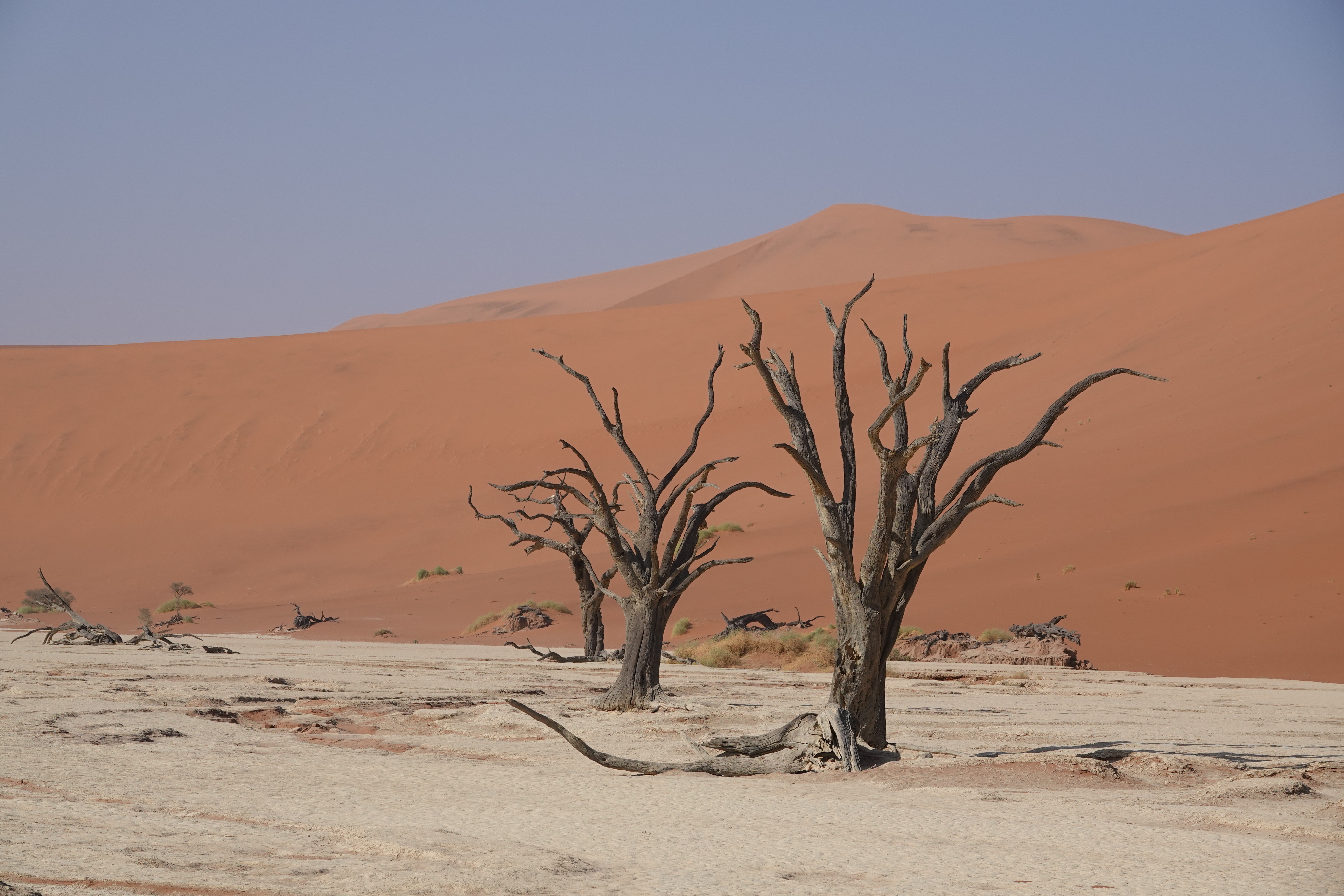 Von dort aus wanderten wir rechts an der imposanten Big Daddy Düne vorbei, bis wir schließlich die berühmten toten Bäume von Deadflei erreichten. Der Anblick war surreal – die schwarzen Baumstämme vor den leuchtend roten Dünen boten eine spektakuläre Kulisse.