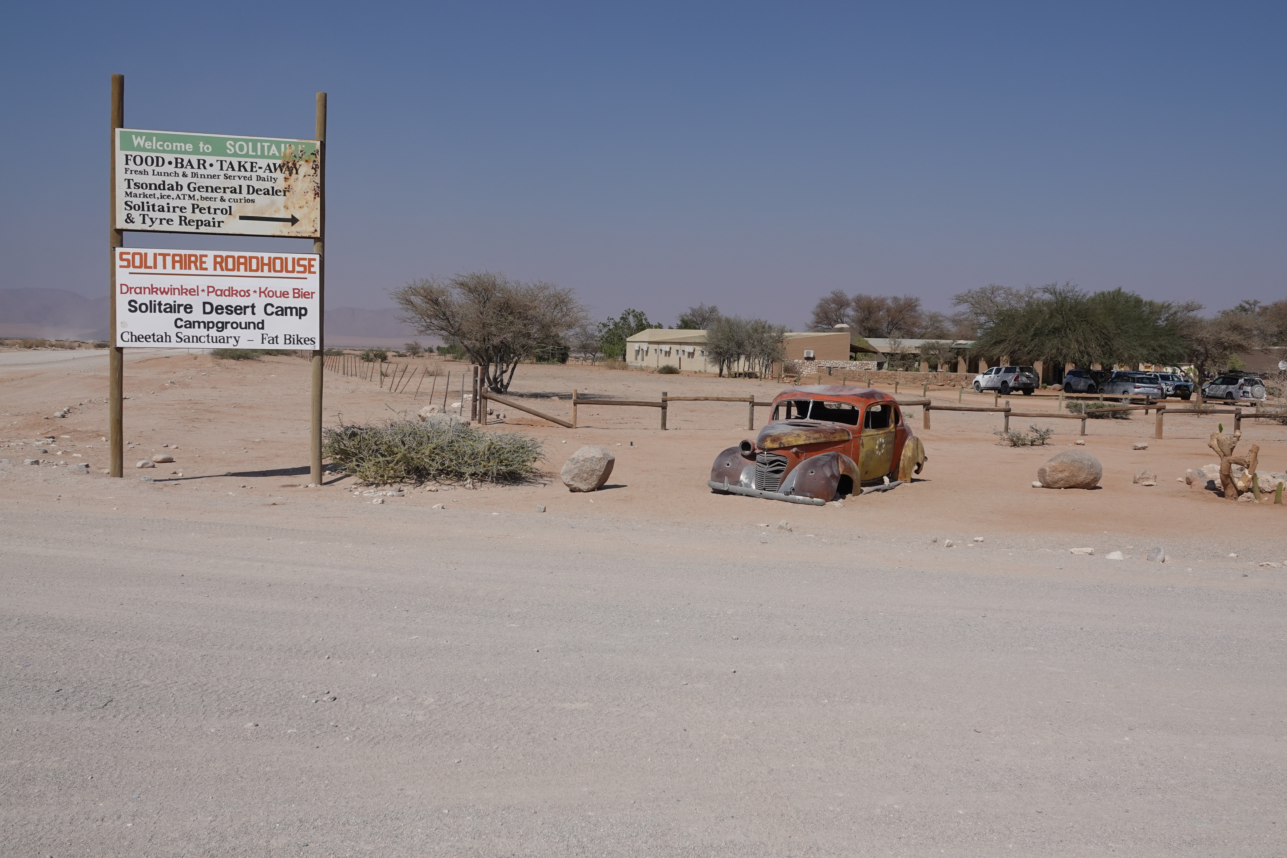 Heute stand eine etwa 370 km lange Strecke vor uns, die größtenteils über Schotterstraßen führte. Unser erster Zwischenstopp war in Solitaire, wo wir den berühmten, noch warmen gedeckten Apfelkuchen genossen haben – ein echter Genuss!