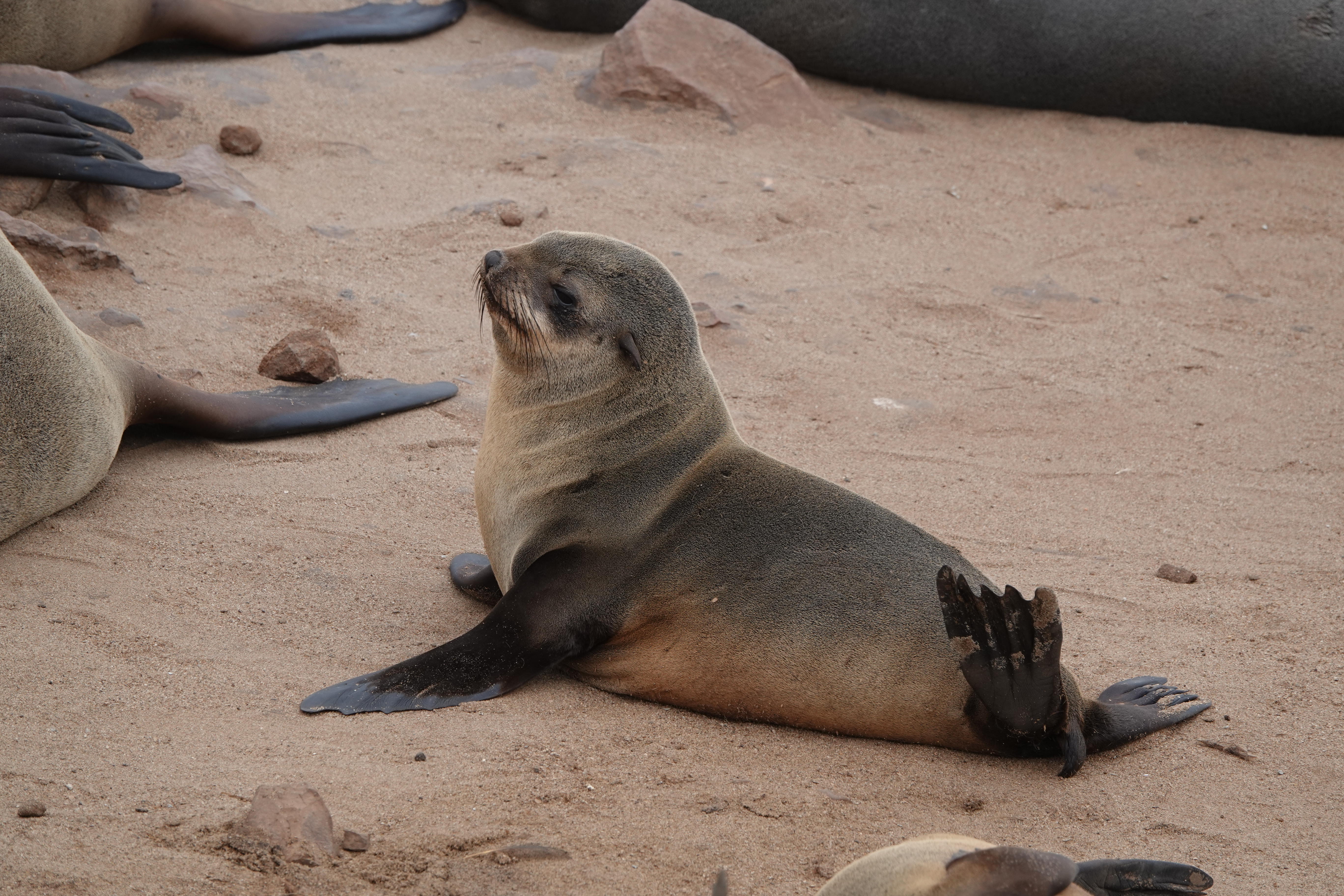 Unser Tag begann mit einem Zwischenstopp bei Cape Cross, da wir die berühmte Seelöwenkolonie unbedingt sehen wollten. Über eine Stunde verbrachten wir dort, fasziniert von den vielen kleinen und großen Seelöwen, die uns immer wieder neue Eindrücke bescherten. Dieser Ausflug hat sich wirklich gelohnt!