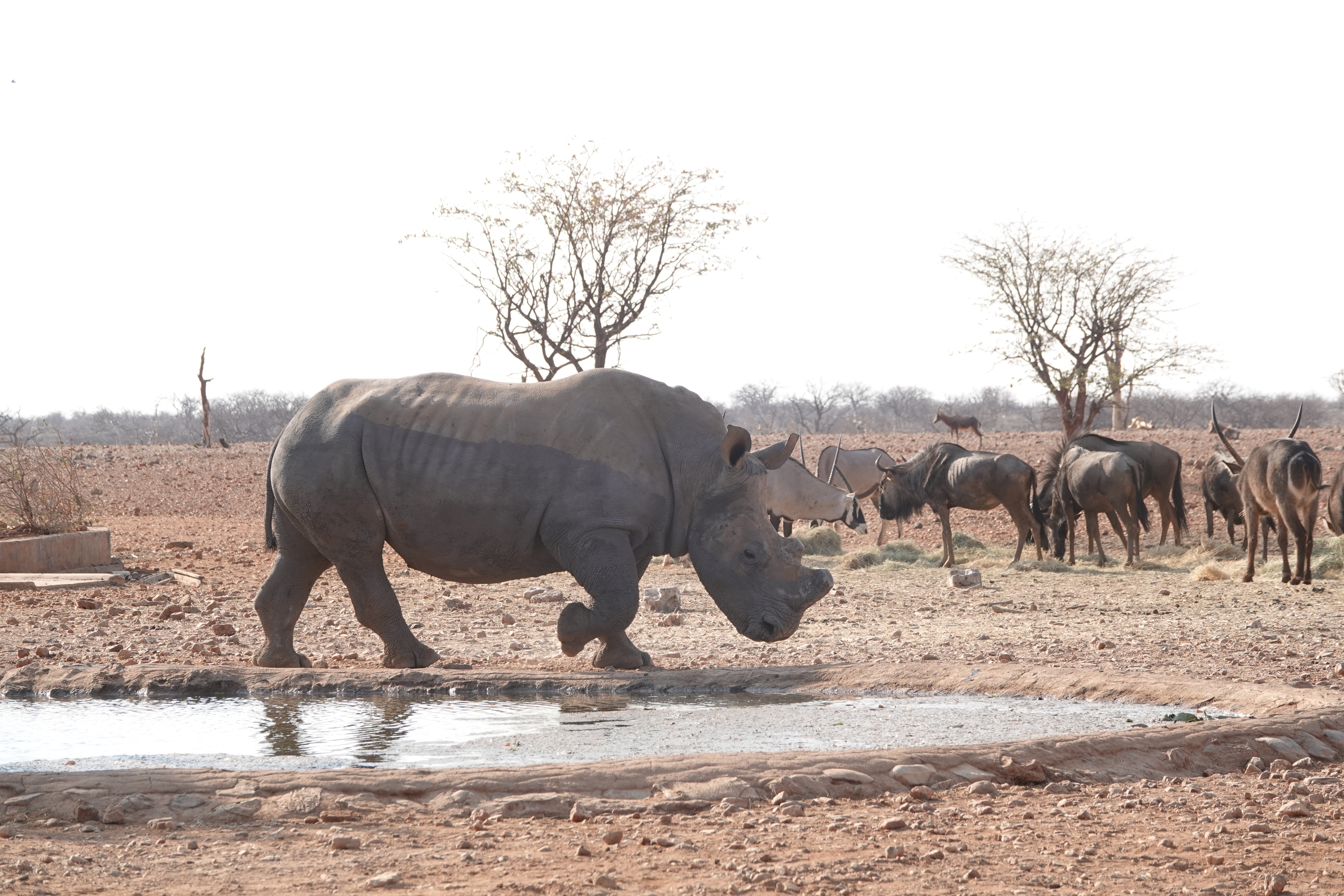 Die Okutala Etosha Lodge empfing uns mit ihrer besonderen Lage und einem hauseigenen Wasserloch, das perfekt für Tierbeobachtungen ist. Besonders beeindruckend war der Unterstand, der es uns ermöglichte, die Tiere hautnah zu erleben. Hier sahen wir eine beeindruckende Vielfalt an Giraffen, Nashörner, Zebras, Oryxantilopen, Springböcke, Wasserbüffel und auch einige Perlhühner.