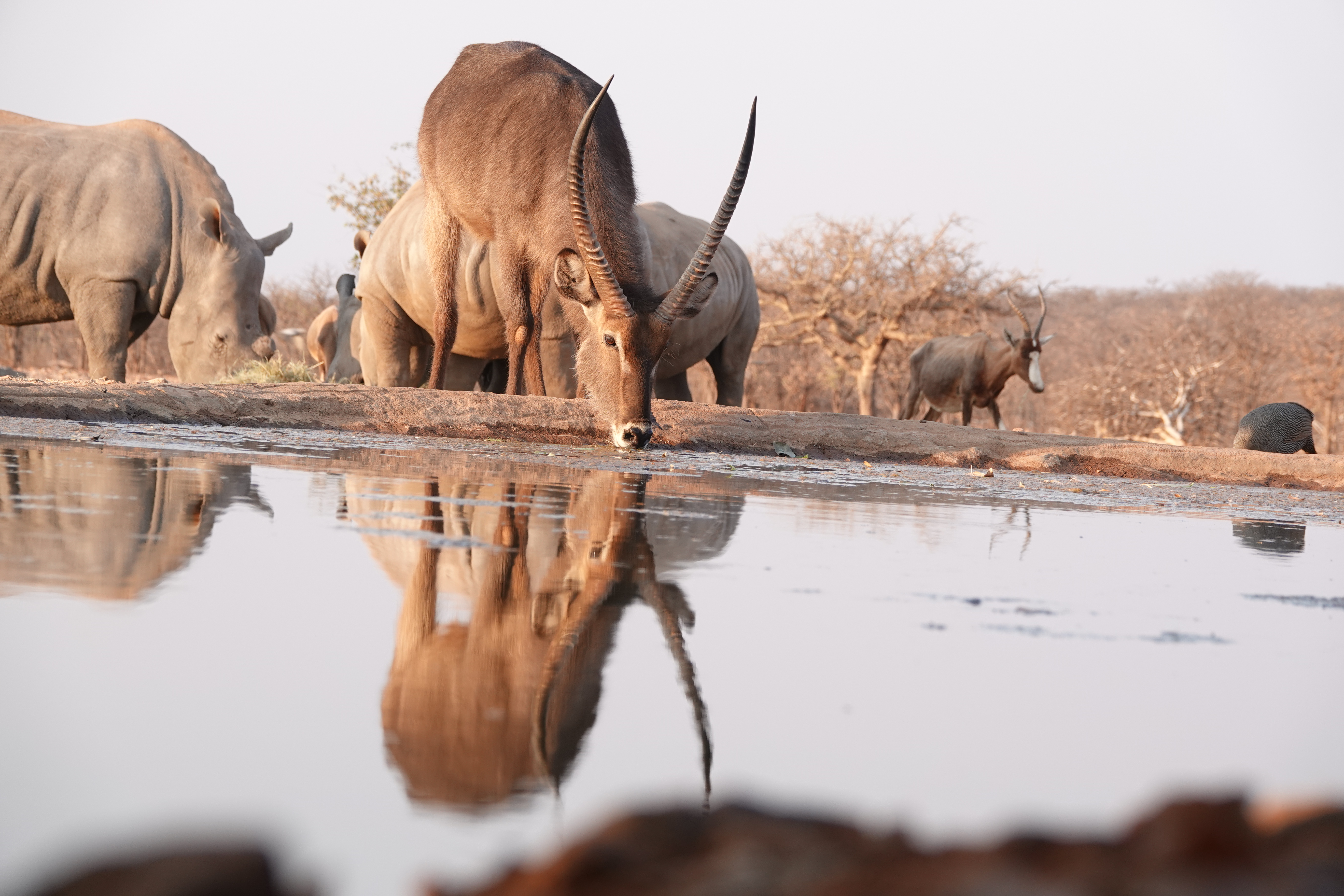 Am Abend ließen wir den Tag entspannt auf der Terrasse der Lodge ausklingen. Mit einem Sundowner in der Hand und dem Blick auf das Wasserloch, wo sich immer wieder Tiere versammelten, war die Atmosphäre magisch.