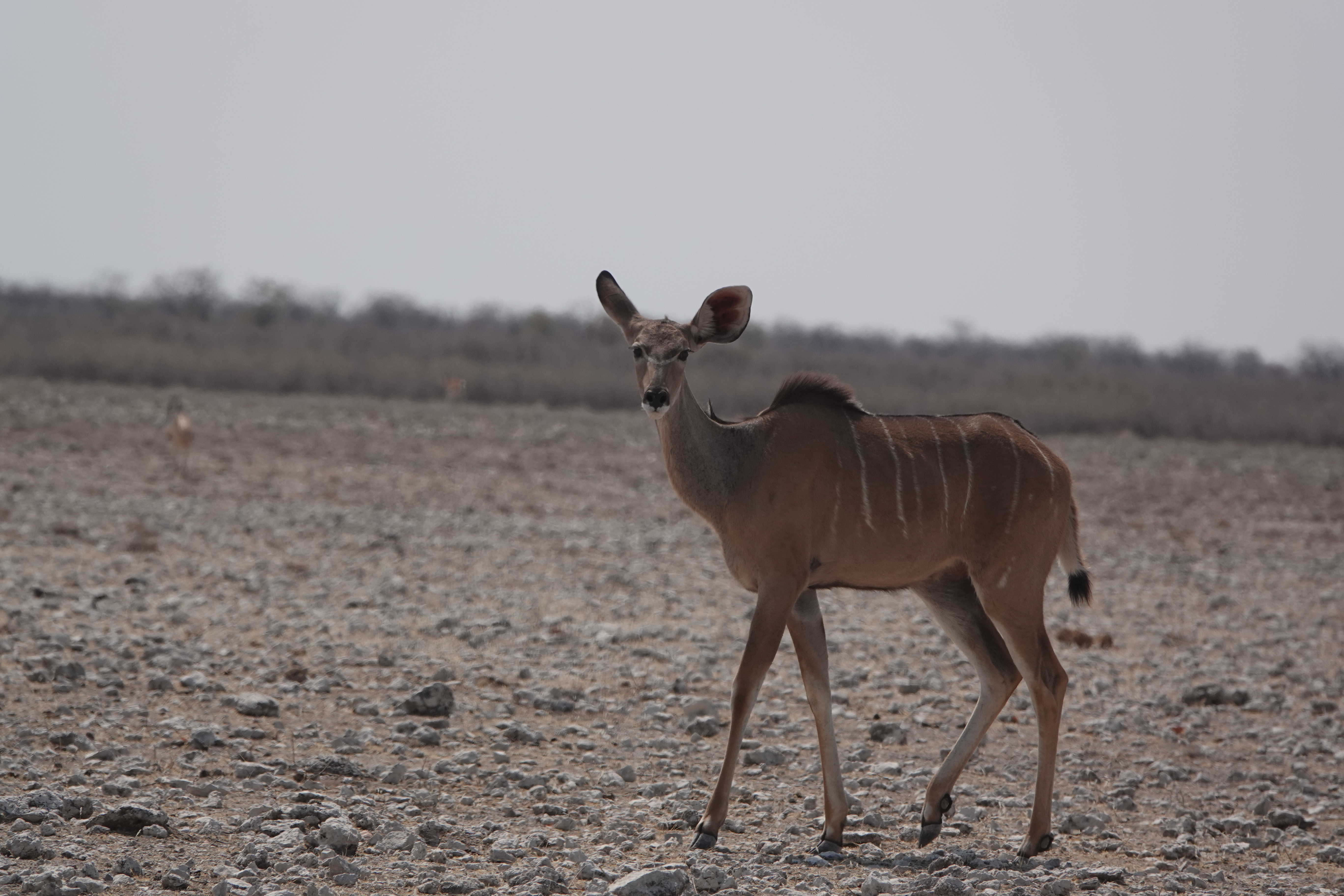 Heute stand kein Umzug in eine neue Lodge an, sodass wir eine geführte Safari im Etosha Nationalpark gebucht hatten – von 7:30 bis 16:00 Uhr. Unsere Tour begann am Ombika-Wasserloch, wo wir ein Nashorn, Zebras, einen Strauß und zahlreiche Antilopen beobachten konnten.