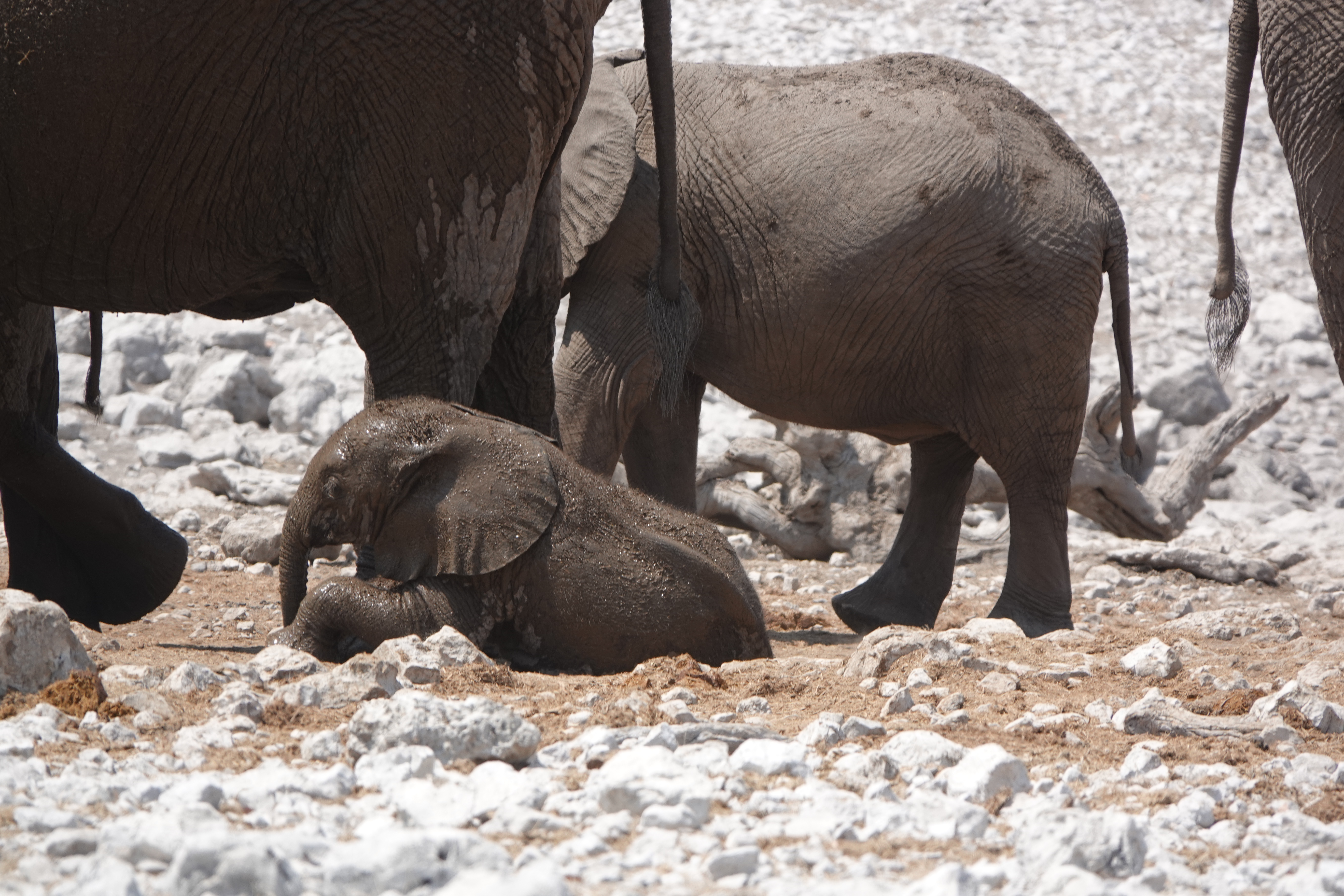 Auf dem Rückweg zum "Olifantsbad" zeigte sich das Wasserloch von seiner besten Seite: Eine Gruppe Elefanten kam zum Trinken und Baden. Diese Safari war wirklich beeindruckend und absolut empfehlenswert.