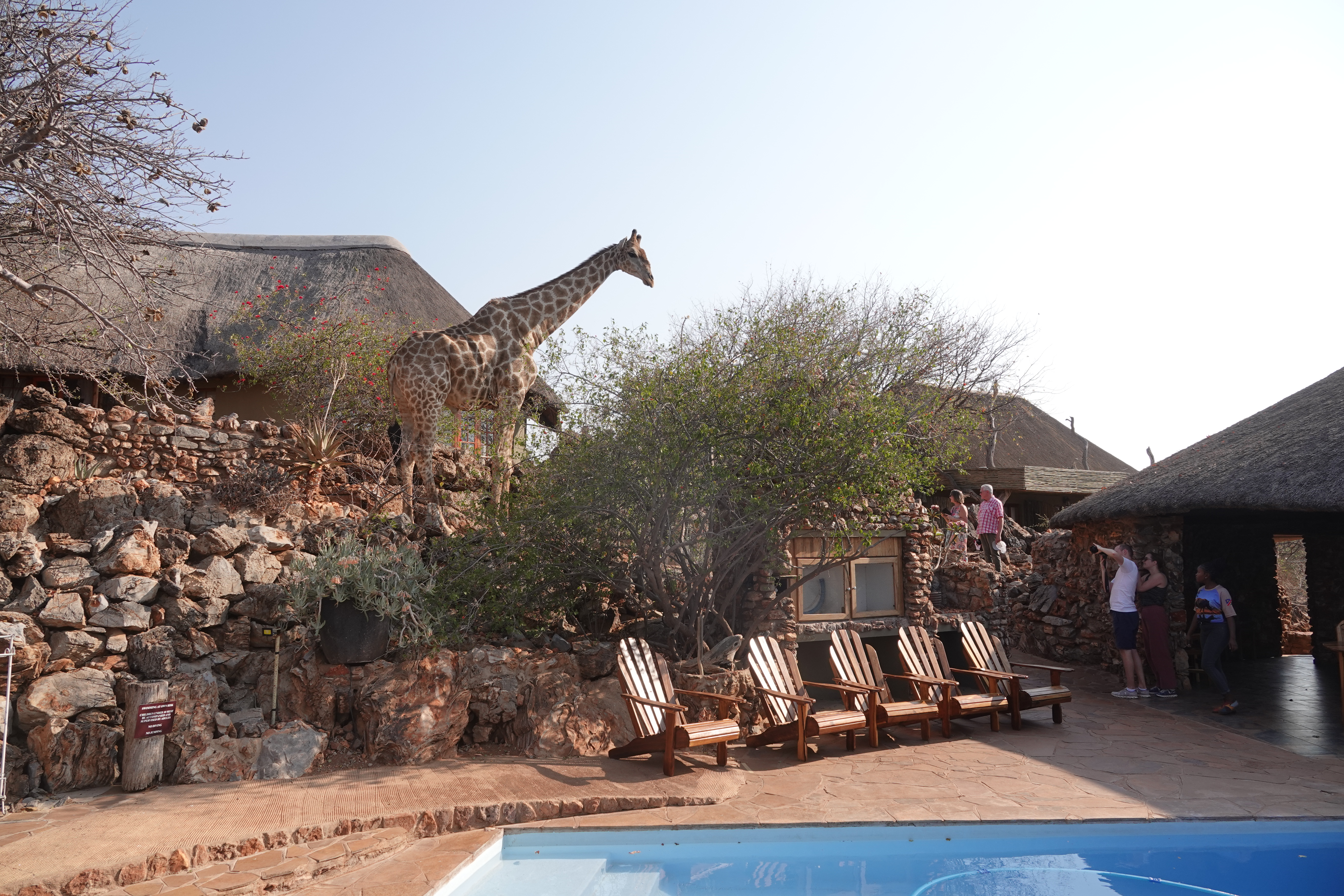 Zurück in der Lodge erwartete uns bereits die „Hausgiraffe“ am Pool. Später habe ich im Unterstand bei einem erfrischenden "Malawi Shandy" noch einmal die Tiere am Wasserloch beobachtet – ein entspannter Ausklang des Tages.