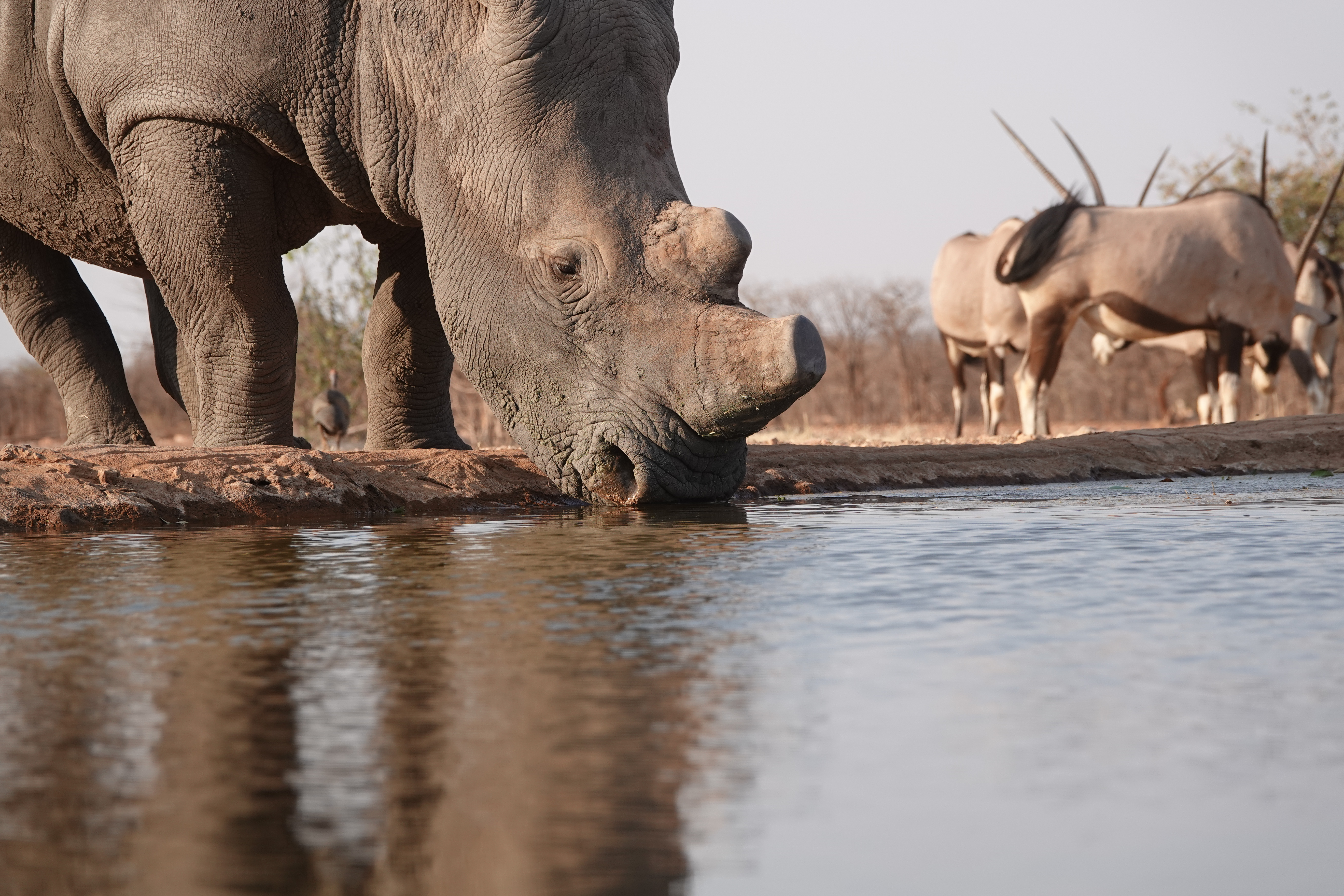 Heute stand kein Umzug in eine neue Lodge an, sodass wir eine geführte Safari im Etosha Nationalpark gebucht hatten – von 7:30 bis 16:00 Uhr. Unsere Tour begann am Ombika-Wasserloch, wo wir ein Nashorn, Zebras, einen Strauß und zahlreiche Antilopen beobachten konnten.