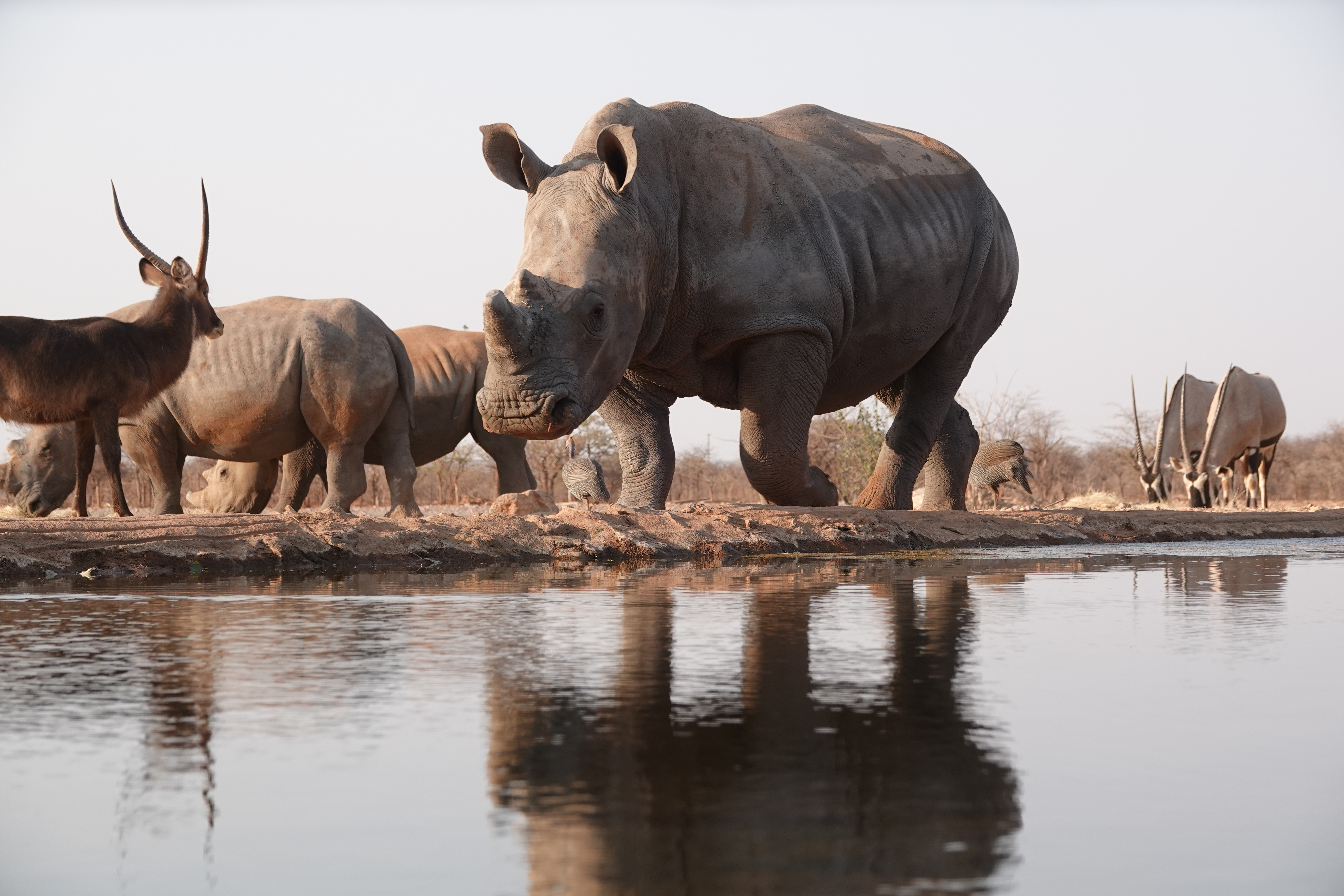 Heute stand kein Umzug in eine neue Lodge an, sodass wir eine geführte Safari im Etosha Nationalpark gebucht hatten – von 7:30 bis 16:00 Uhr. Unsere Tour begann am Ombika-Wasserloch, wo wir ein Nashorn, Zebras, einen Strauß und zahlreiche Antilopen beobachten konnten.