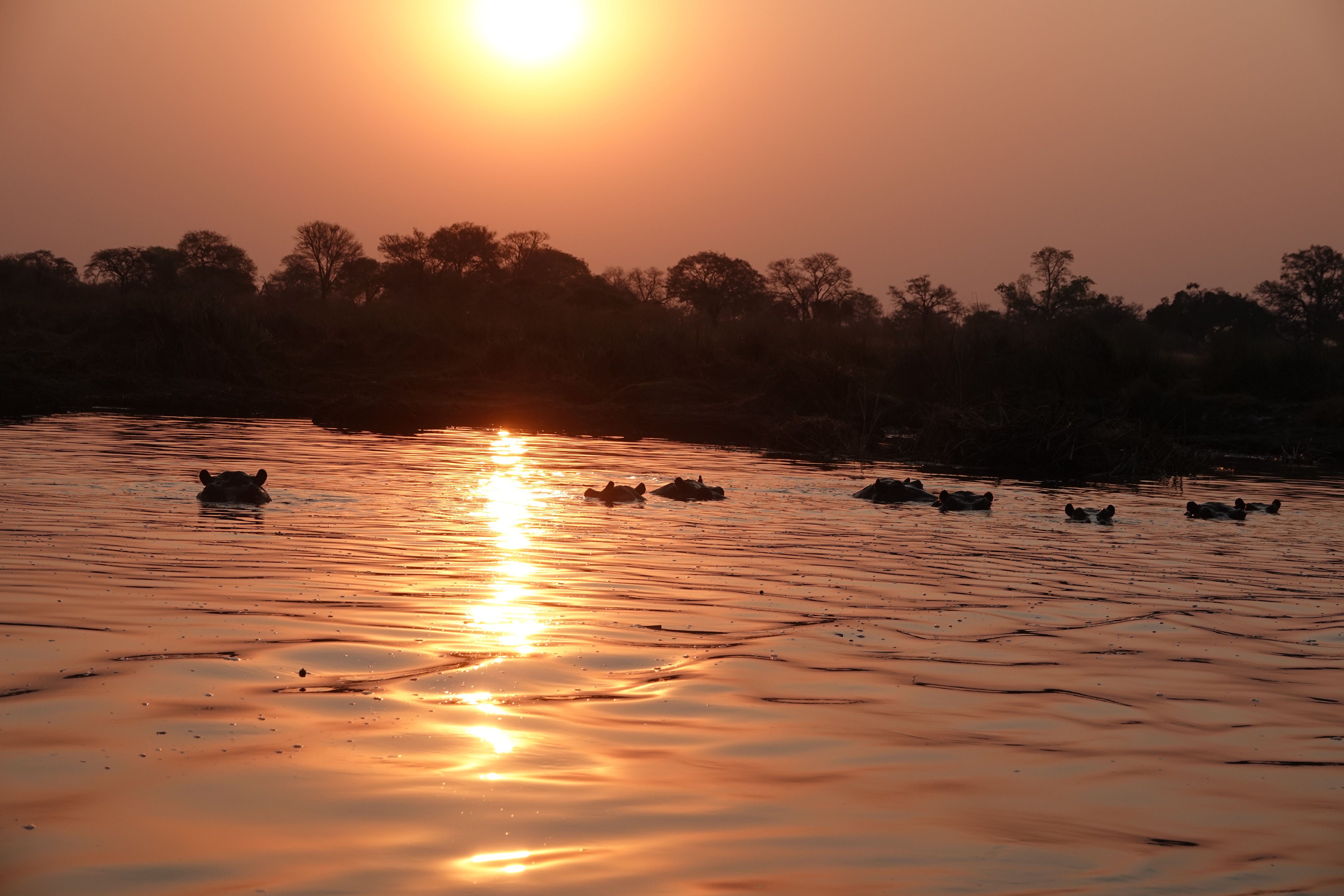 Am Abend unternahmen wir eine Bootsfahrt auf dem Kwando, bei der wir Krokodile und Flusspferde aus nächster Nähe beobachten konnten. Den Tag ließen wir mit einem Sundowner direkt am Fluss, in der Nähe der Nilpferde, entspannt ausklingen.