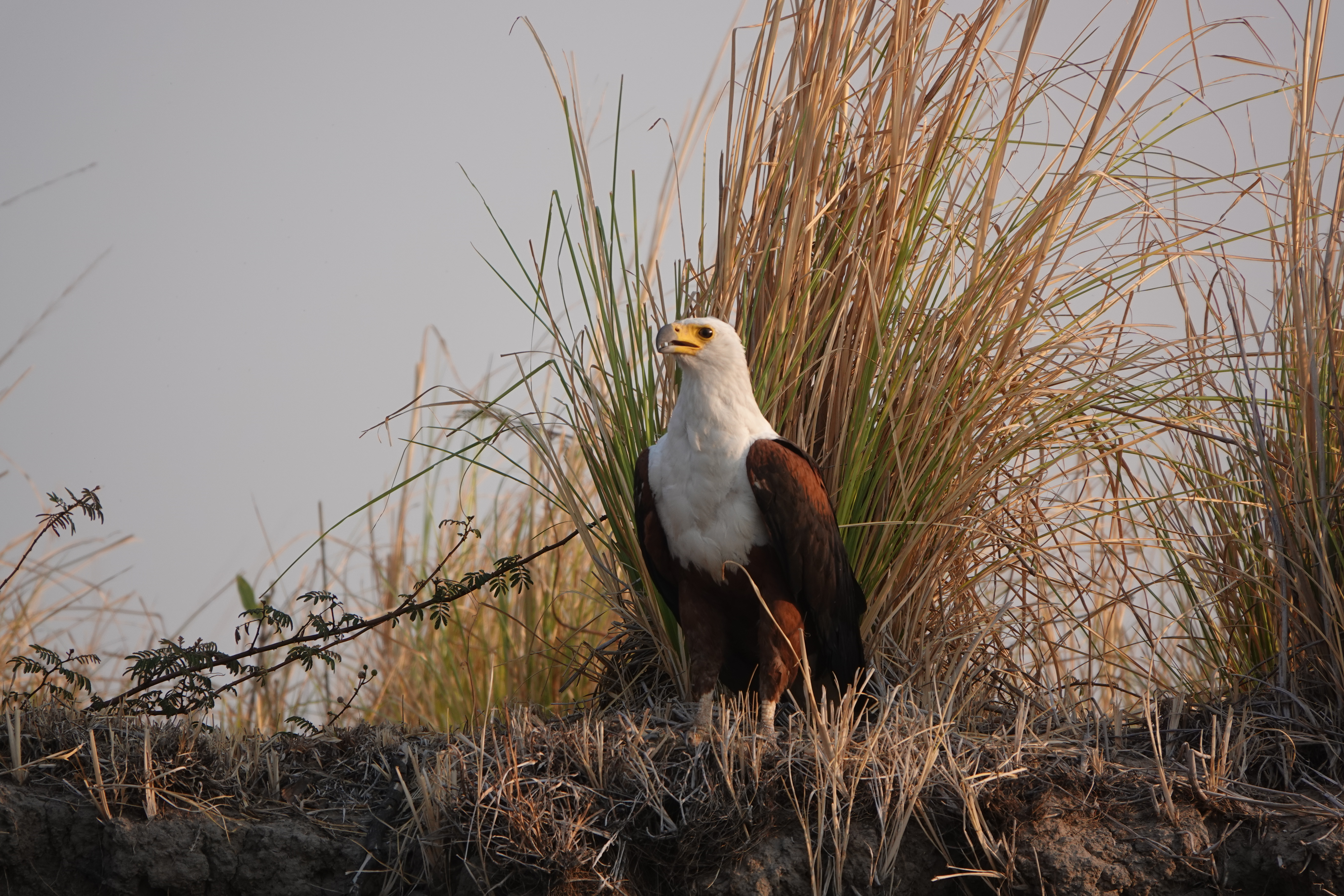 Am Abend unternahmen wir zu viert eine Sundowner-Bootsfahrt auf dem Sambesi, die sowohl entlang der namibischen als auch der sambischen Seite des Flusses führte. Während der Fahrt konnten wir Flusspferde und Krokodile in ihrem natürlichen Lebensraum beobachten. Auch ein majestätischer Seeadler sowie zahlreiche andere Vögel kreuzten unseren Weg. Diese beeindruckenden Begegnungen mit der Tierwelt machten den Abend zu einem unvergesslichen Erlebnis.