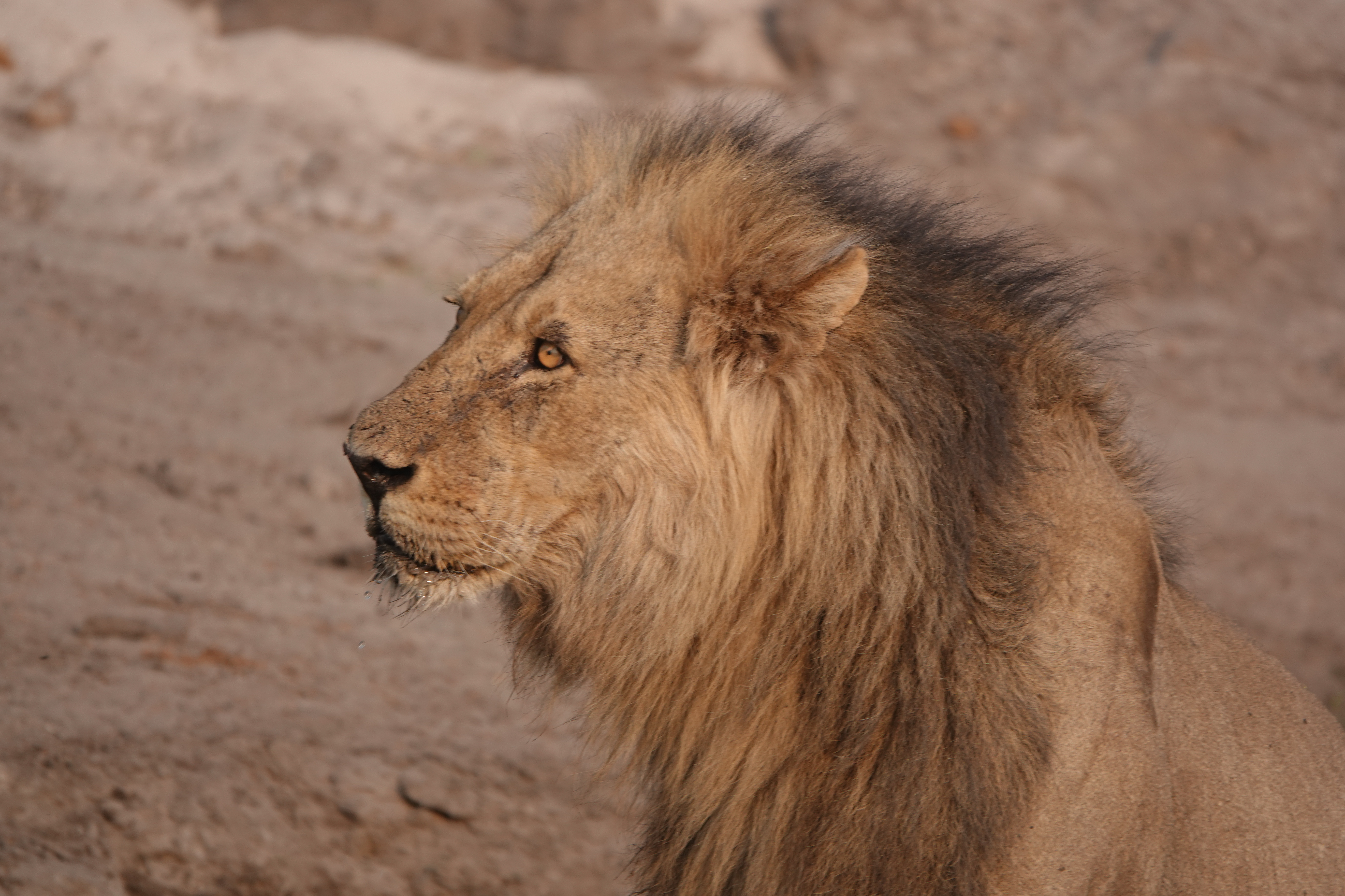 Heute starteten wir bereits um 06:30 Uhr zu einer Frühpirsch auf dem Chobe-Fluss. Unser Guide hatte den Tipp bekommen, dass sich ein stattlicher Löwe in der Nähe des Ufers aufhält – und wir hatten tatsächlich Glück. Nachdem der Löwe etwa 10 Minuten lang entspannt auf dem Damm gelegen hatte, stand er plötzlich auf und spazierte direkt vor uns zum Fluss hinunter. Ein beeindruckendes Naturschauspiel! Zum Sundowner, um 16:00 Uhr, unternahmen wir eine weitere Pirschfahrt mit dem Boot. Es war ein entspannter Abschluss des Tages mit wunderschönen Aussichten auf die Landschaft.