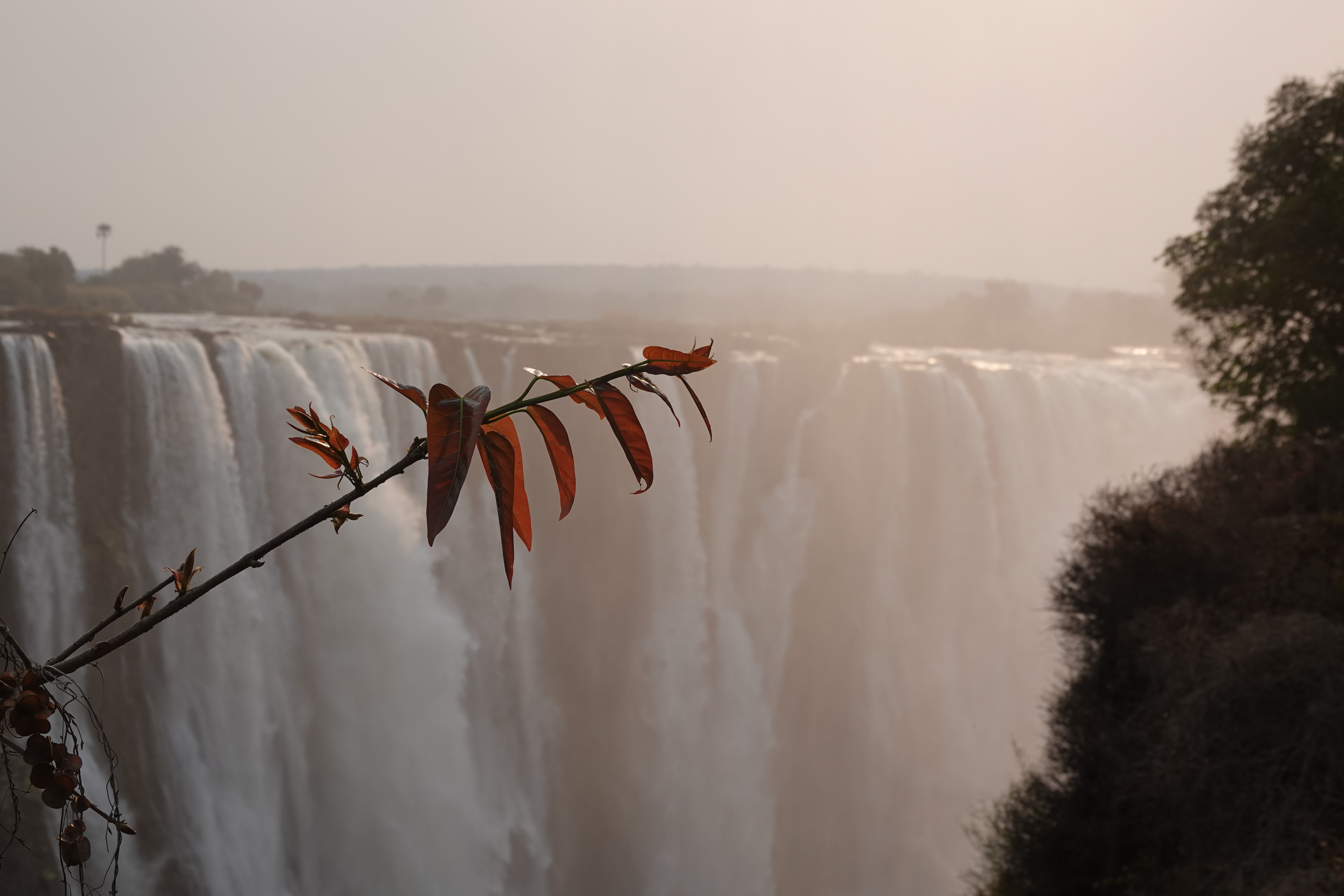 Heute waren wir bereits kurz nach 06:00 Uhr zur Öffnung bei den Victoria Fällen. Um diese Zeit ist es noch angenehm kühl, und wir hatten das Glück, einen wunderschönen Regenbogen über den tosenden Wassermassen zu sehen. Die Wasserfälle sind wirklich atemberaubend schön und ein unvergessliches Erlebnis.