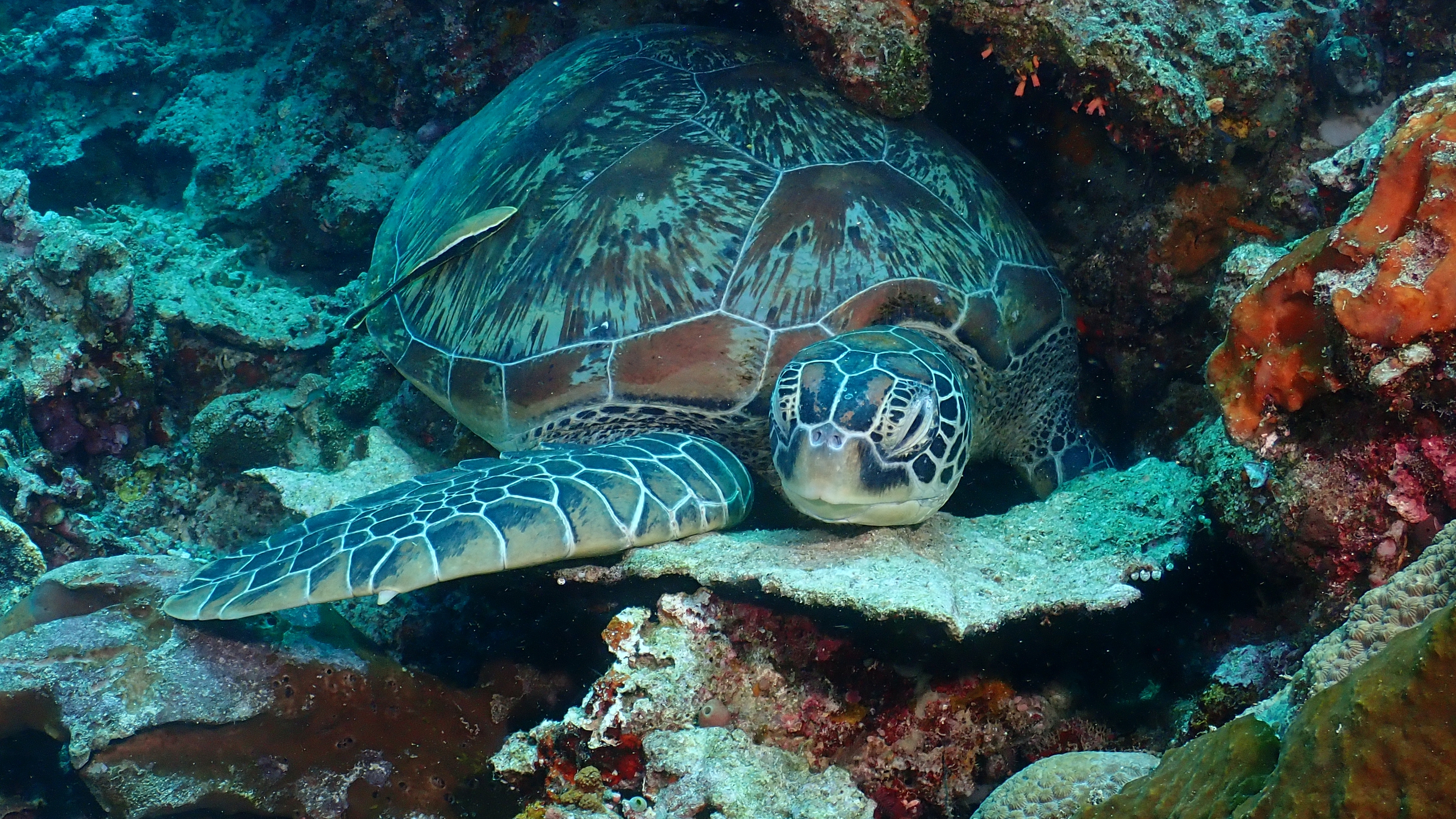 Heute führte uns das Boot zu einer beeindruckenden Steilwand, an der wir zwei herrliche Tauchgänge machten. Besonders der zweite Tauchgang war ein echtes Highlight: Über 30 Schildkröten begleiteten uns – ein unvergesslicher Anblick! Auch die farbenfrohen Nacktschnecken sorgten für tolle Motive, und zum Abschluss schwamm mir noch ein Papageifisch direkt vor die Linse. Am Abend saßen wir wieder gemütlich an der Bar, schauten gemeinsam die aktuellen Bilder durch und ließen den erlebnisreichen Tag entspannt ausklingen.